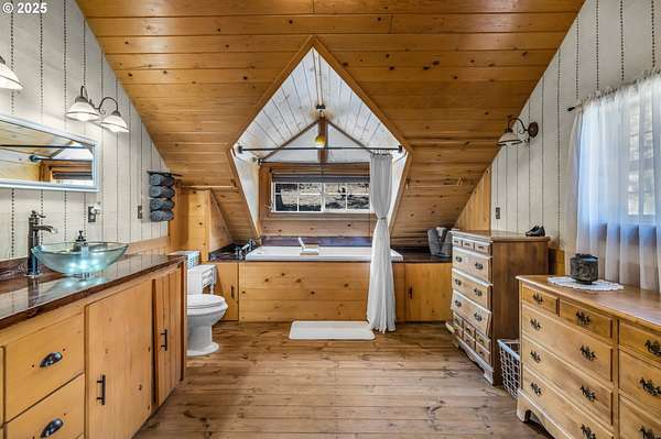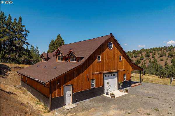 This impressive Contemporary home features four bedrooms and two bathrooms, encompassing a total of 3,456 square feet and constructed in 2008. The main floor boasts acid-stained concrete floors, a spacious family room that could easily be converted back into shop space if desired, two non-conforming bedrooms, a bathroom equipped with a washer and dryer, an office area, and ample storage. The home is heated with woodstove and wall heaters.The upper level includes two additional bedrooms, a bathroom, a living room, a dining area, a kitchen, and a second office space. The property is situated on 7.77 fenced acres, offering privacy and scenic views, and includes a large covered deck. Additionally, there is an unfinished shop with a concrete floor, providing further potential for customization.