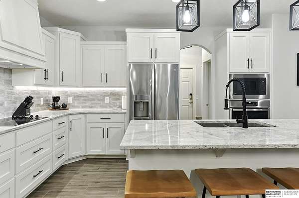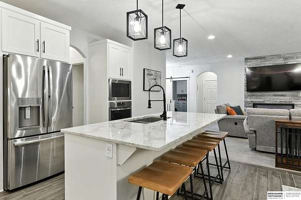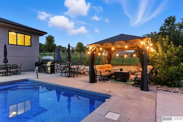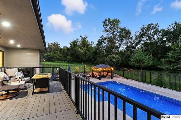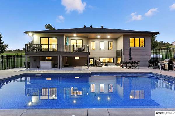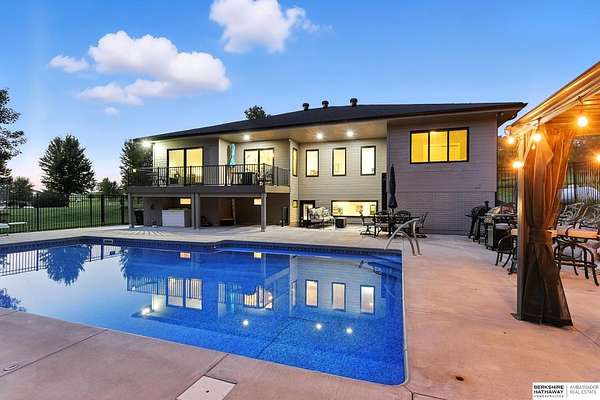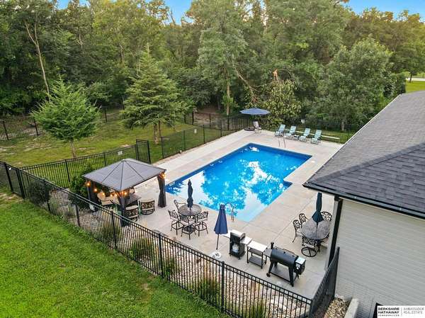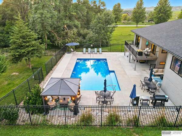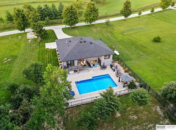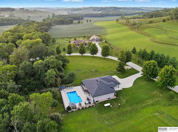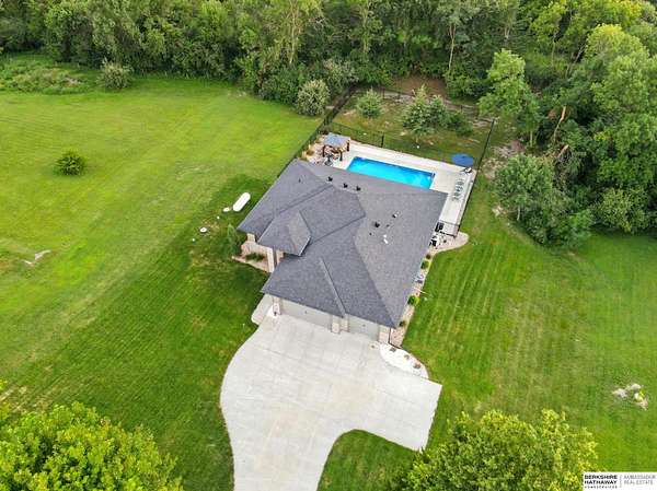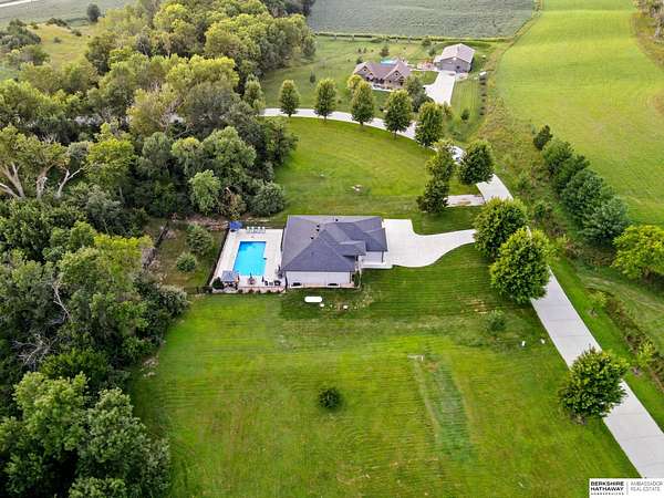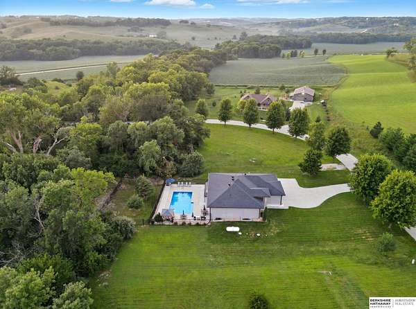 Vanessa Shoemaker, M: 402-915-1211, vanessa.shoemaker@bhhsamb.com, https://www.VanessaShoemaker.com - The Glen Oaks. Tranquility in Fort Calhoun's best: corner lot on 2.39 acres of flat + partially wooded land. Be impressed with the NEW finishings + features throughout: full kitchen w/ island, fireplace framed with stacked stone, electric blinds.Transom windows for exceptional pool views, a walk-out entrance for easy access to the heated pool.The patio is enhanced with a fire place framed in quartzite. The primary suite's access to the redesigned deck is extended with new oversized sliding glass doors. A picture window has been added to the 2nd bedroom and a window installed in the garage to bring in more natural light. New roof and enclosed dog run that extends to the trees. All these additions and improvements were thoughtfully designed to maximize the functionality of both the house and land, ensuring that the property will be appreciated and enjoyed for years to come. If you love t