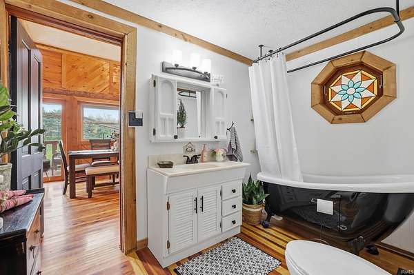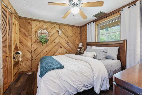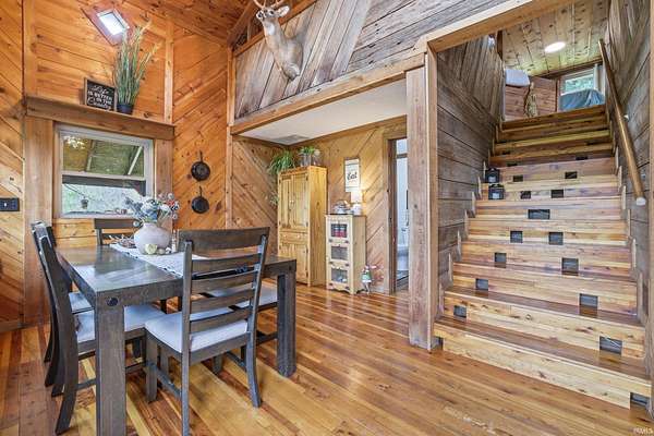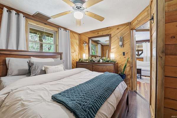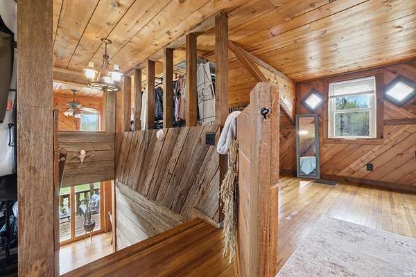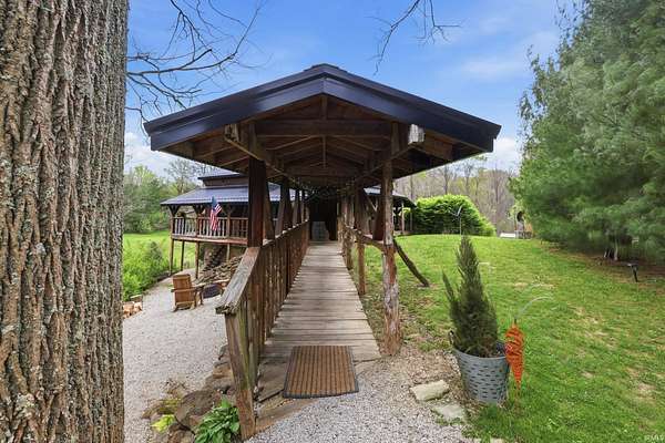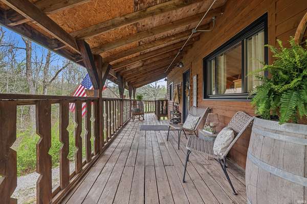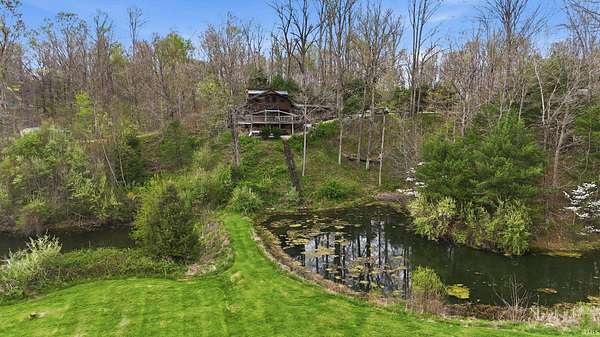 Wait until you see this custom-built cedar and Brown County stone home! Don’t be misled by the two-bedroom count—this property also features a walk-out basement that adds valuable living space and versatility! But first, let’s talk about all the NEW updates! Completed in 2026: New claw-foot tub and shower unit in main-level bathroom. New in 2025: a new roof on both the cabin and garage, new windows, cedar on the eaves, and fresh exterior staining. In 2024, a 40x30 detached garage was added along with a new well pump. The home offers natural fencing of evergreen trees that line this property all 4 seasons! It sits on 10 beautiful acres and showcases incredible character with wood walls, exposed barn wood, and hardwood floors throughout. The inviting living room flows seamlessly into the kitchen, creating a warm and open gathering space. The kitchen features open shelving, stainless steel appliances, and granite countertops. Just off the kitchen, the dining area offers patio doors leading to a wraparound deck that is covered on three sides—perfect for entertaining, relaxing, or simply enjoying the peaceful setting. Upstairs, the massive bedroom offers endless possibilities. It can serve as a luxurious primary suite, creative studio, office, or additional living area. The lower level includes another room, a full bathroom, and a laundry/mechanical room—adding even more flexibility to the home's layout. Step outside and experience the natural beauty of this property. The woods, ponds, and meadow attract an abundance of wildlife, including deer, fox, numerous bird species, and even Blue Heron. Check out the 12x6 shed/barn in the fenced area. Ever considered a mini farm? This could be it! The views from this home are truly limitless. Multiple windows overlook two stocked ponds and a park-like meadow, creating a setting that feels like your own private retreat. A dream location for nature lovers, hikers and outdoor enthusiasts! Speaking of, this could also be considered for an AirBnb per Owen County Planning and Zoning! This home is conveniently located too. It is only 10 minutes from the west side of Bloomington and I-69 and also offers high-speed internet! To top it all off, the property is surrounded by 150 acres of Nature Conservancy land, providing unmatched privacy, protected views, and extraordinary natural beauty. It truly is a must see!