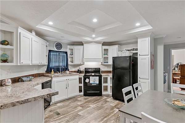 Welcome to nearly 7 acres of country living at its finest! This brand new 2025 Scotbilt 16X80 home offers 2 bedrooms and 2 full bathrooms, thoughtfully designed with tons of upgrades throughout. Some of the upgrades include: sheetrock walls, knocked-down ceilings, trayed ceiling in kitchen, crown molding and recessed lighting throughout, and beautiful LVP flooring with no carpet anywhere. The kitchen features beautiful countertops, a stainless steel sink and a reverse osmosis water filtration system. Both bathrooms showcase elegant ceramic sinks, w/double sinks in the primary, along with a huge over-sized shower for a spa-like feel. Situated on nearly 7 acres with a private pond, this property offers the perfect blend of modern comfort and peaceful country living with plenty of room to roam, relax and enjoy the outdoors.
