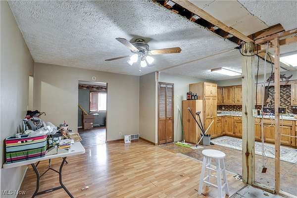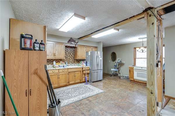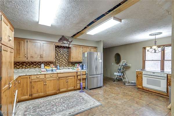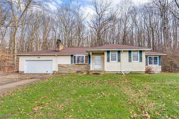 Escape to your own private sanctuary! Tucked away at the back of a sprawling 2.36-acre double lot, this 2,223 sq. ft. ranch offers three bedrooms, two full baths, and a first-floor laundry! From the front door, enter the spacious living room with a large window, a wood-burning fireplace, and hardwood floors. The heart of the home is the kitchen, featuring beautiful Amish-built cabinetry and stainless steel refrigeration. The open-concept layout leads into the dining area, with easy access to the cozy family room outfitted with shiplap walls, a pellet burner for chilly nights, and the laundry room. There are three wonderfully sized bedrooms, with two of them connected by one of the full baths. The additional full bath is in the hall and features a tub/shower combo and crown molding. The basement, while unfinished, offers tons of potential for your finishing touches, with a rec room, 2nd kitchen, and a third full bath. Outside, enjoy the peaceful setting, surrounded by trees. There is a two-car attached garage, and the backyard is fenced in. Don't miss your chance to see this wonderful home; schedule your showing today!