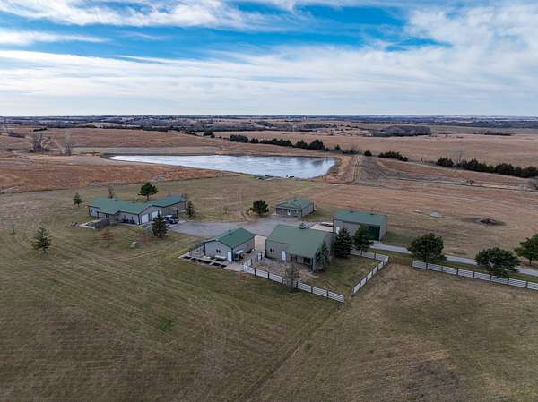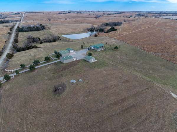 Liberty Ridge Hunting Retreat offers premier hunting with trophy whitetail, turkey, pheasant, quail, waterfowl, and predator opportunities on 160 +/- acres of CRP, farm ground, grass, and hardwoods in Pawnee County, NE. Two ponds provide bass, catfish, and bluegill fishing. The barndominium lodge, guest bunkhouse, and multiple outbuildings support comfortable stays, storage, kennels, and livestock.