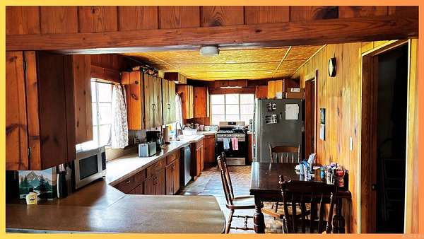 Massive Hunting Lodge with breathtaking 40 acres and 3 Ponds! Hwy 71 Frontage as well as CR 18 access. 45 min. scenic drive to Choctaw landing and approx. 35 minutes to Mena. 2 wells and also city water. Summit nat. gas, Wickes water, Rich Mountain Electric, 16x40 Building, FANTASTIC Mudroom, 48 brand new LED low-profile ceiling lights throughout main home, nice SS appliances included, and working stone fireplace. This is a really fun property, come and see! New electric wiring and plumbing throughout! Perfect location for RV Park! Large pond w/ crappie and large mouth bass! The rustic cabin connected to the main house can be made real special and sleep a ton of guests. Beautiful Barren Creek running through the property is a huge highlight and a must see! Local folklore holds that a young Robert Mitchum frequented the lodge during his heyday. Nice carefree awning to relax on your patio and nature-watch.