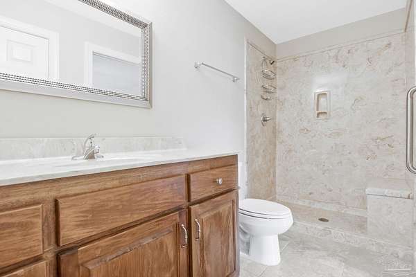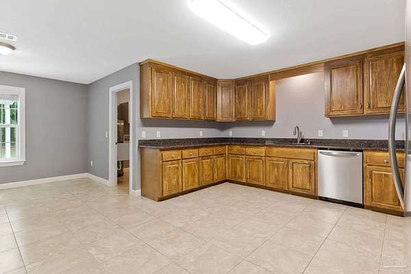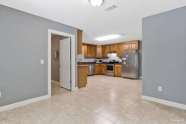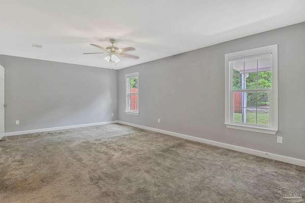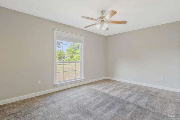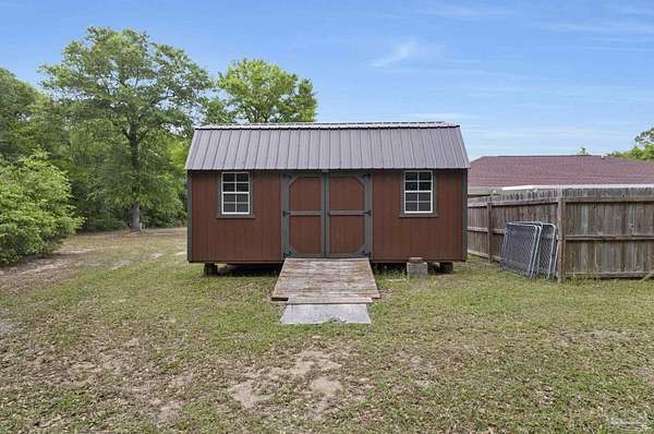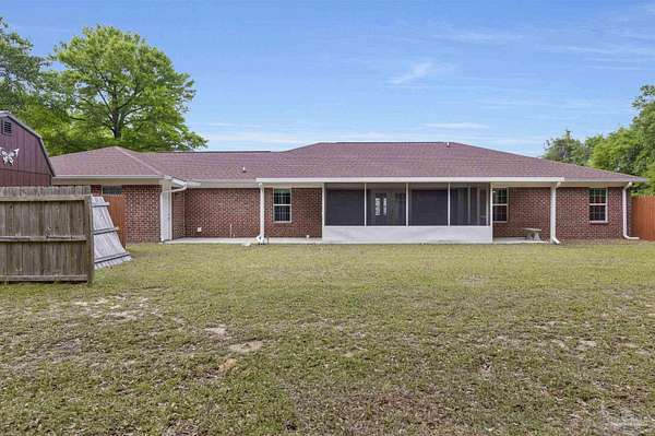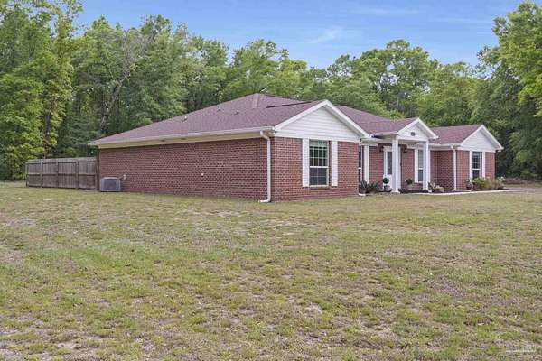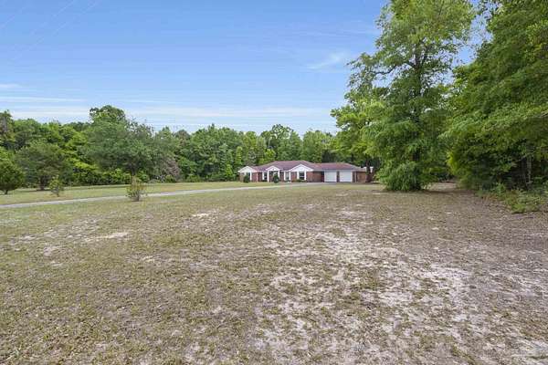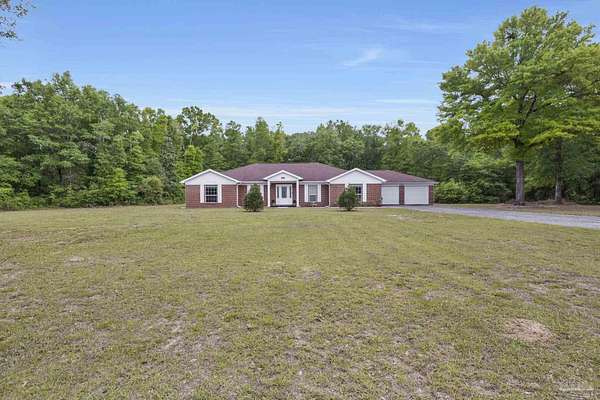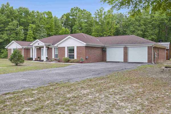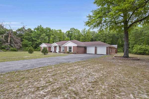 More Pics Coming!!! Drive out past the open fields and wide sky that stretch between Pensacola and Pace and you start to feel a little more relaxed. That is exactly the point. Tucked into the trees on two private acres, this 2019 ranch-style home is the kind of place people move further out for!!! The privacy is real AND so is the peace. There is even a trail through the back of the property that walks you straight into the woods. The home itself is in pristine condition throughout. Four bedrooms and three full baths spread across an open, easy-living floor plan. The kitchen is a standout with rich stained wood cabinets, plenty of counter space, and a generous eating area that flows right into the oversized living room and sunroom beyond it. This is where people naturally gather and stay. Outside is where this property really opens up. The screened back porch sits among the trees and is an honest retreat. The garage is enormous with real workshop and storage space, and there is a separate shed for bikes, lawn equipment, and the extras that every acreage property needs. Everything has been cared for, everything is meticulous. If you have been searching for a four bedroom brick ranch home on acreage in Santa Rosa County that actually delivers the feeling of space and privacy, this one does it without asking you to compromise on the inside. All major systems updated or new! Brand new carpet installed through out and freshly painted and clean as a pin. Ideal for caring for parents, extra guests, with two primary suites, and large bedrooms. It'll be gone if you wait.