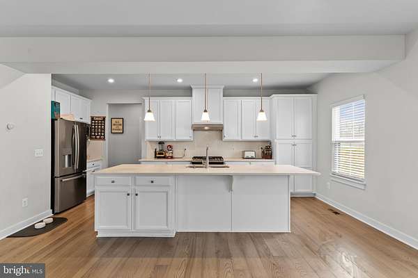 Welcome to 607 Babs Run - a beautifully maintained single-family home built in 2021, perfectly situated on approximately 1.5 private acres in sought-after Stafford County. Offering over 3,600 square feet of living space, this spacious residence features 4 bedrooms and 3.5 bathrooms with a thoughtfully designed open floor plan ideal for both everyday living and entertaining. Step inside to find LVP flooring and abundant natural light throughout the main level. The heart of the home is the gourmet kitchen, complete with GE stainless steel appliances, quartz countertops, tile backsplash, and a large center island that flows seamlessly into the dining area and expansive great room. A dedicated home office and powder room add convenience and flexibility on the main level. Upstairs, the spacious primary suite offers tray ceilings, dual walk-in closets, and a private en-suite bath featuring dual vanities, a soaking tub, and a separate shower. Three additional generously sized bedrooms, each with walk-in closets, plus an upper-level laundry room complete the second floor. The finished lower level provides a large recreation area, a full bathroom, additional storage, and walk-out access to the backyard - perfect for entertaining, hobbies, or a home gym. Enjoy peaceful outdoor living from the back deck and patio overlooking the spacious yard, offering privacy and room to relax, garden, or entertain. Located just minutes from shopping, dining, and commuter routes, this home combines quiet country living with convenient access to Fredericksburg amenities and I-95.