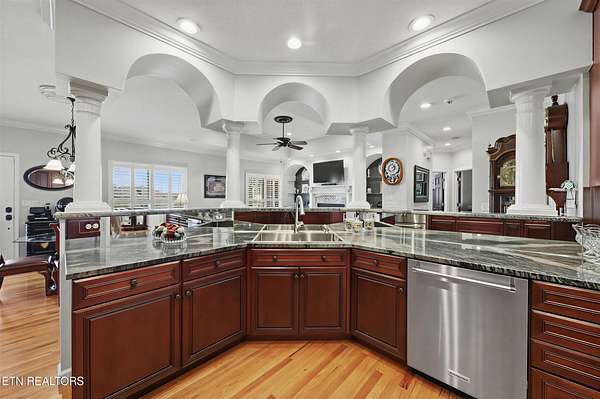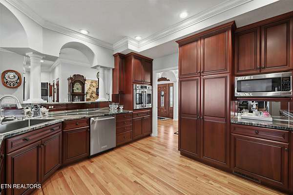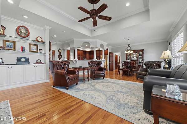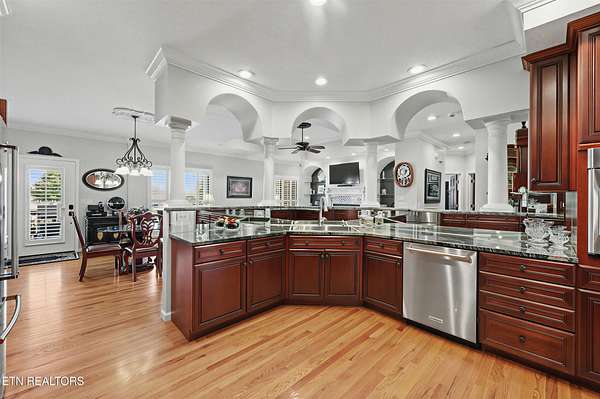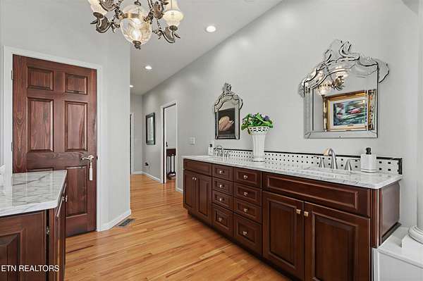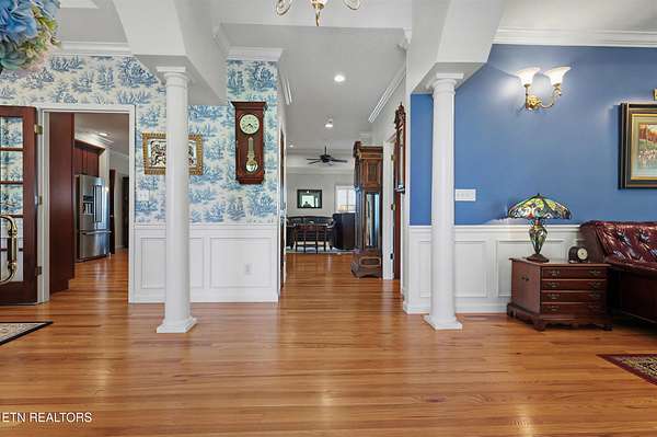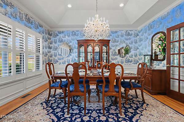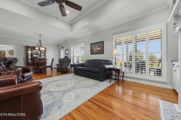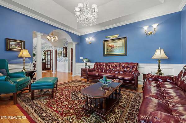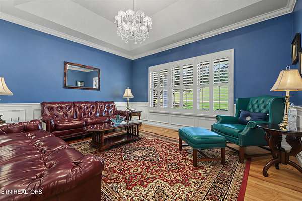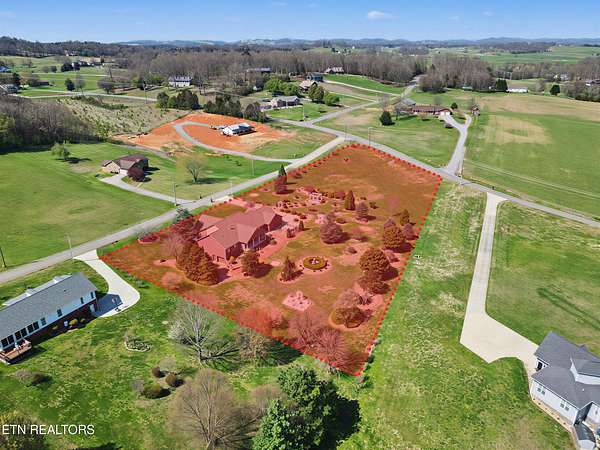 Come see this stunning one level brick ranch home on over 2 acres. Located just 35 minutes from downtown Knoxville and from Sevierville. The landscaping is impeccable and will make it feel like you're living in your own park with views of the mountains and the lake from your back porch. The home is almost 3,000 square feet on one level, with gleaming hardwood floors throughout, an open floor plan, high ceilings, and a beautiful 3 car garage. The primary suite contains large windows, a fireplace, a large walk in shower, and a wonderful soaking tub. The kitchen boasts fantastic granite countertops, custom cabinetry, and stainless appliances. The large living room contains a tall tray ceiling, built in shelves bordering the tile fireplace. With two additional bedrooms, an office, a sitting room, and a formal dining room, this home is perfect for hosting or having a quiet retreat. Other features include almost 1,500 square feet in the unfinished basement accessed from the outside, shingles, gutters, and heat pump all less than 5 years old. You'll be amazed at how clean and meticulously maintained the home is both inside and out. Call and schedule your showing today!