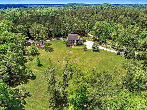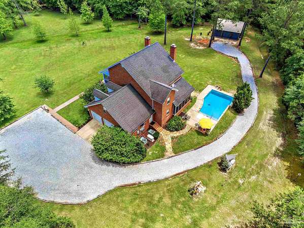*Tranquil Oasis: A 3.4+/- Acre Country Escape with Poolside Bliss!* Prepare to be enchanted by this breathtaking multi-level 4-bedroom, 3.5-bath brick masterpiece! More than just a house, this vibrant sanctuary is ideal for serene country living! The charming front porch invites you to unwind, while the second-level balcony off the expansive primary suite is the ideal place to relax & take in the gorgeous views that surround the property. The stunning primary suite is a true oasis, featuring an ensuite bath with a double sink vanity, luxurious clawfoot tub, & a walk-in shower-offering a spa-like retreat at home. Culinary enthusiasts will be dazzled by the state-of-the-art kitchen, showcasing custom-built cabinets, a large bar, top-of-the-line stainless steel appliances, & beautiful granite countertops. Enjoy casual breakfasts in the cozy nook, while the formal dining room sets the stage for festive gatherings. The colossal living room is the heart of this home, boasting a soaring 18-foot vaulted ceiling & a charming wood-burning fireplace. In addition , a second fireplace in an adjacent room adds even more beauty & character to this remarkable home. You'll say "WOW!" the moment you walk through the door! Step outside to your private paradise! The screened porch overlooks a sparkling gunite saltwater pool-an idyllic spot for summer relaxation amid lush landscapes featuring beautiful foliage & lemon & pecan trees. Other features include a magnificent 32x30 workshop that awaits your creativity AND is equipped with electricity & roll-up doors! The 2 car garage offers ample space, while the Whole-House Generator provides year-round comfort & peace of mind. With beautiful wood flooring throughout, a spacious pantry, & abundant closet space, this home offers everything you need & more! Don't miss out on this opportunity-schedule your private tour TODAY & step into a lifestyle of unparalleled luxury & comfort! Buyer to verify all information during due diligence.