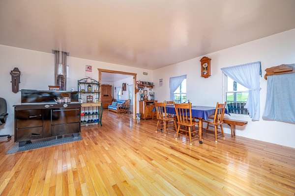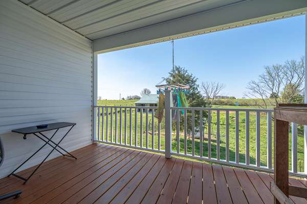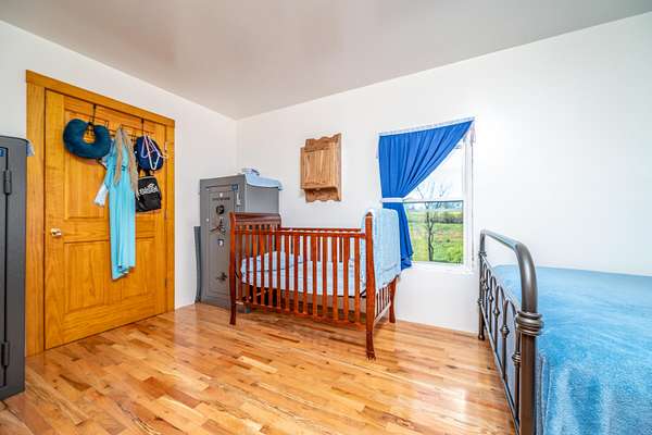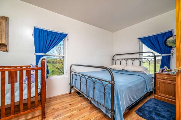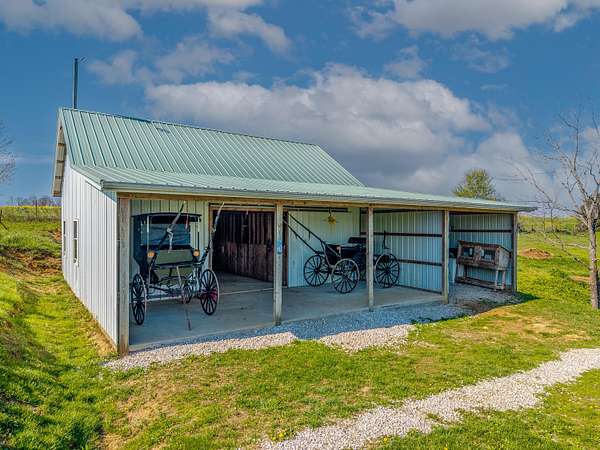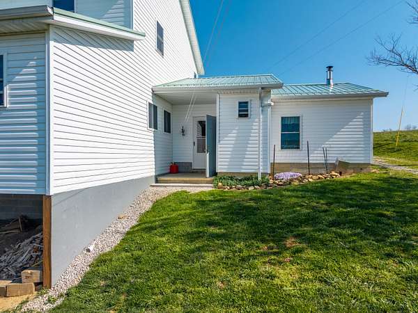 This peaceful retreat is calling your name! Nestled on 4.8 beautiful acres, this Amish-built home offers the perfect blend of space, charm, and endless potential. With 6 bedrooms and a thoughtfully designed layout, this property is ideal for those seeking comfort, flexibility, and a serene lifestyle. Step inside to find a spacious living room and a large kitchen, perfect for everyday living and entertaining. The main level features a bedroom with stunning views that stretch for miles, offering both convenience and a peaceful place to unwind. An attached 24x28 mudroom adds valuable storage and functionality, with the option to easily convert it into a garage if desired. Enjoy your morning coffee or relax in the evenings on the enclosed back porch while taking in the beauty of the surrounding countryside. Upstairs, you'll discover a blank canvas ready for your vision-complete the additional 5 bedrooms and living area, or design a custom space to fit your needs and lifestyle. The walkout basement provides even more square footage, offering the flexibility to keep it as storage or transform it into additional living space, recreation areas, or guest quarters. Outside, the property continues to impress with a barn featuring three stables, making it perfect for hobby farming or animal lovers. The expansive 4.8 acres provide plenty of room for gardening, outdoor activities, or creating your own private entertainment space. From the moment you arrive, you can truly feel the peace and beauty this property has to offer. This is a must-see opportunity for anyone looking for a private retreat with room to grow and make it their own. Call today to schedule your private showing-you do not want to miss this one!