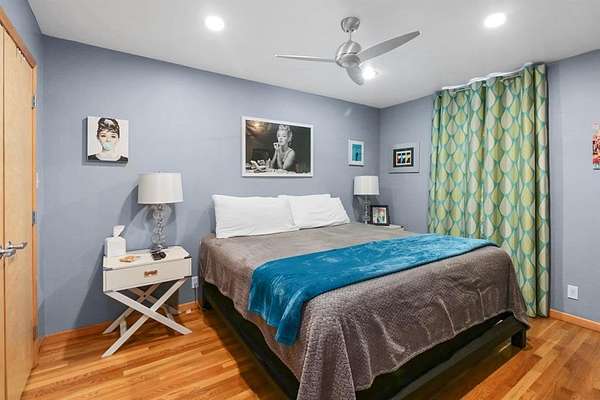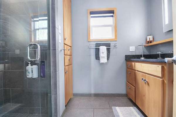 The Studio, a private lower-level suite, offers 700 sq. ft. with a king bedroom, twin bed, kitchenette, and vintage bath--ideal for guests or rental income.