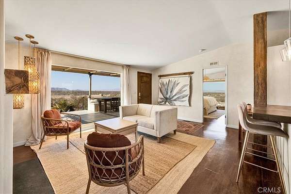 Charm is an understatement. Tucked away on 2 private acres in North Joshua Tree, this fully renovated home offers the perfect blend of style, comfort, and desert seclusion. Surrounded by a complete fence line, the property is designed with magazine-worthy taste and a Santa Barbara-inspired "smooth stucco" finish that immediately sets it apart.