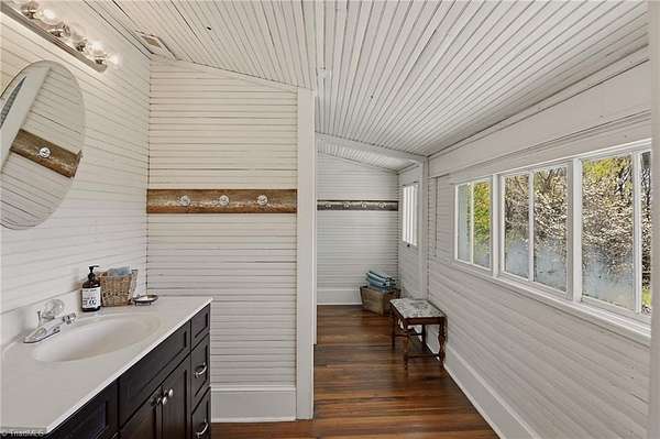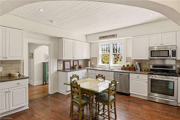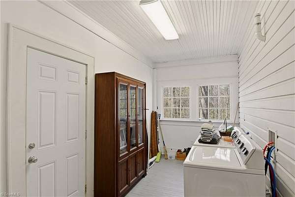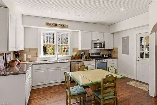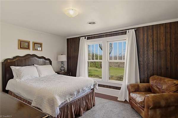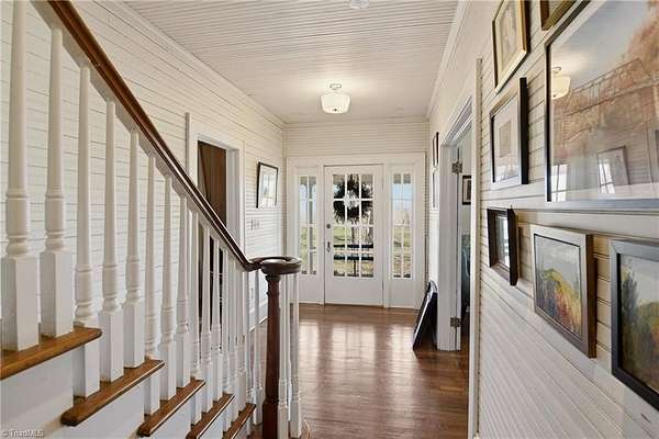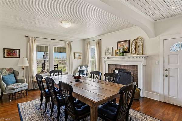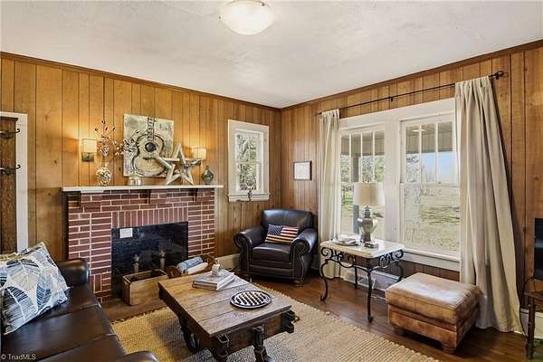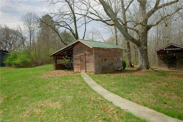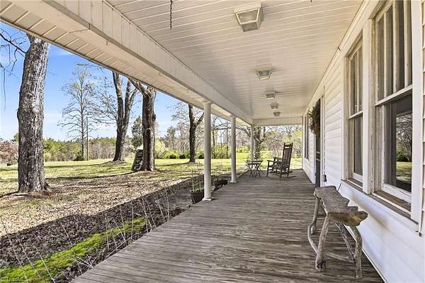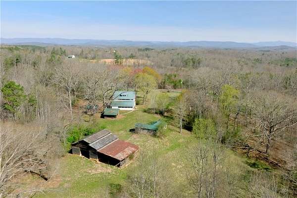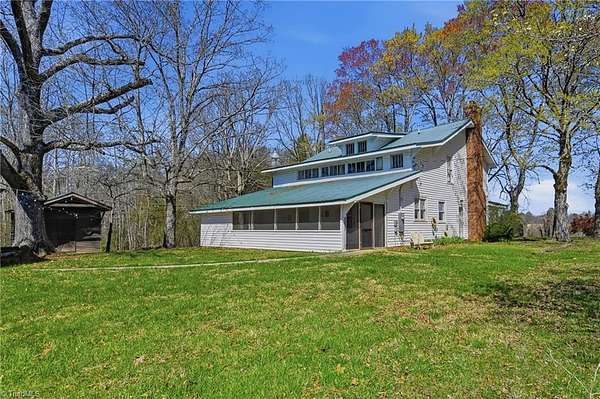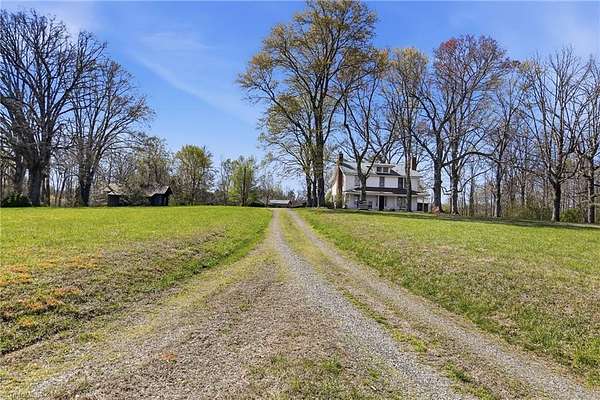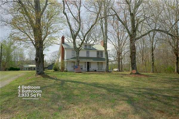 Charming 1910 Farmhouse on 21.8 Acres in Stokes County, NC. Fully furnished and set on two lots amid gently rolling farmland, this 4-bedroom, 3 bath, 2,933-square-foot farmhouse blends historic character with modern comfort. The two-story layout showcases traditional craftsmanship and inviting spaces ideal for family gatherings or weekend retreats. The property features multiple outbuildings including stables, bunk cabin, caretaker house, two barns, open hay fields, mature hardwoods and pines, and a stream in the southeast corner—an ideal setting for hobby farming, livestock, or simply enjoying peaceful country life. With no HOA, no deed restrictions, and low county taxes, it offers exceptional freedom and value. Conveniently located about 20 minutes from Pilot Mountain and 38 minutes from Winston-Salem, this timeless farmhouse beautifully captures the rural heritage and charm of North Carolina’s foothills.