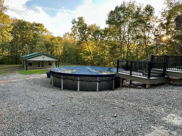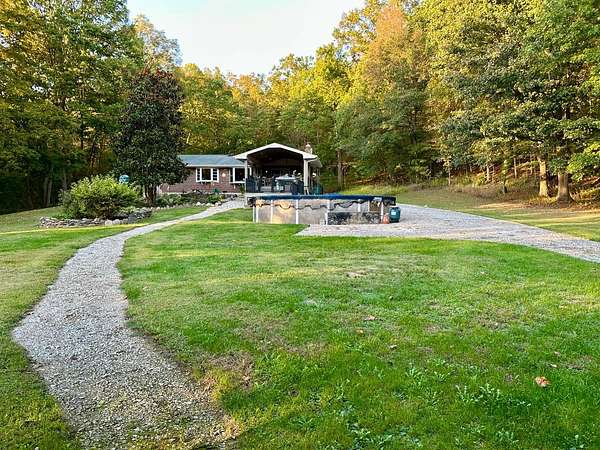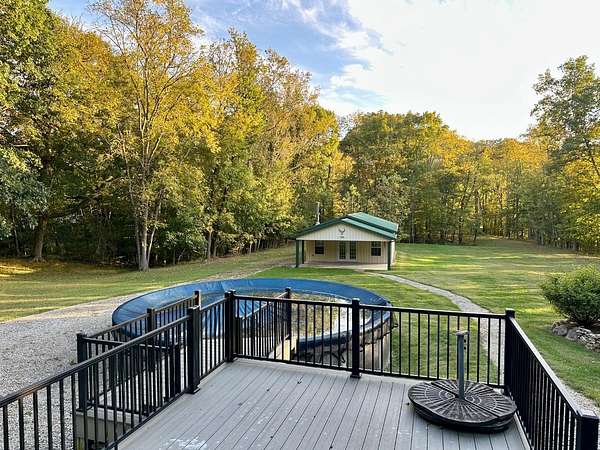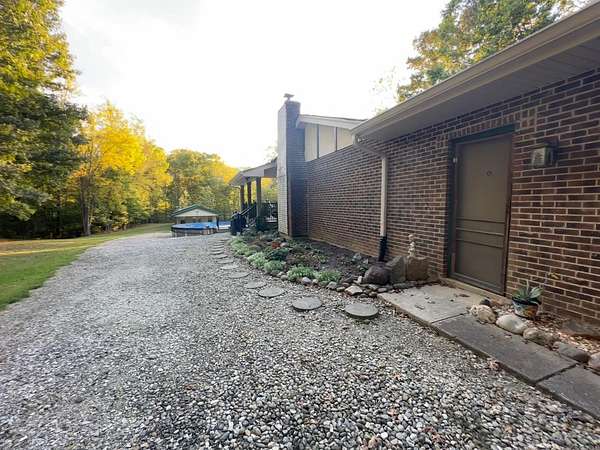 Beautiful well maintained 3 bedroom 2 full bath 1570 Sq. Ft. Ranch w/full basement and 2 car attached garage nestled on a private 4.8 acres country setting! House has ceramic tile on the kitchen floor and custom tile work in both bathrooms, hardwood and carpet on the remaining floors. Also the kitchen has Oak cabinets and closets and pantry w/ ample storage. From the family room you exit onto an expansive 16x20 custom built covered porch w/trex decking and ceiling fan. The main porch leads you stepping down onto a traditional deck w/trex decking overlooking the 24' above ground pool. Beautiful extreme landscaping w/Koi pond, also a 24x52 pole barn with a covered porch that could be turned into a carriage house for your guests. This is an entertainer's delight and minutes to I-74. This won't last long! Shared recorded easement gravel driveway (easement), partial pavement on private drive. House sold "AS IS WHERE IS".