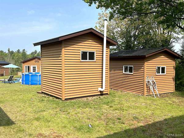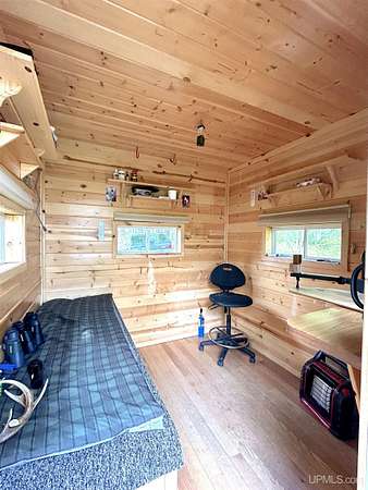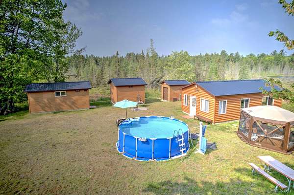 Welcome to your ultimate outdoor retreat in Michigan's breathtaking Upper Peninsula! This exceptional 80-acre camp offers the perfect combination of privacy, natural beauty, and prime deer hunting opportunities. Built in 2011 and located on Lustig Lake, just east of Republic, this property is a hunter's paradise--some call it their own personal paradise - where you can escape the hustle and hear nothing but the sounds of nature for miles. "Camp South Hill" - features full amenities--an open-concept living area, a modern kitchen, and comfortable sleeping quarters. It is fully solar-powered with inverters and new batteries, ensuring sustainable energy independence and located in a separate, quiet building called the "Power Plant". Three state-of-the-art deer blinds dot the property and are strategically placed for the ultimate hunt. Relax in the propane sauna after a day in the woods, on the water or in the pool! The compound includes guest quarters and versatile spaces like the cozy "Bunk House" or the "Hideout"--perfect as additional accommodations for family and friends or for your own needs. This gorgeous property also has an outhouse (two-seater), a one-car garage used as a workshop, and a storage building providing functional storage and utility space. Enjoy stunning views, peace and quiet and a scene like no other. Located afar from neighboring properties, Camp South Hill offers peaceful solitude and an immersive nature experience. This property is one of a kind and has to be seen in person to appreciate it's beauty and functionality - ideal for hunters, outdoor enthusiasts, or anyone seeking a serene escape into Michigan's wild frontier. Don't miss the chance to own your private slice of heaven in the Upper Peninsula! Schedule your private tour today and step into your future outdoor paradise! Please be sure to let your Realtor know you are pre approved or have proof of funds when scheduling a showing.
