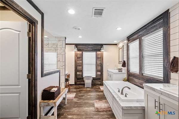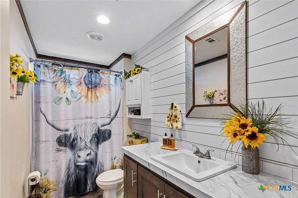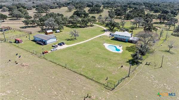 Experience country living at its best with this stunning homesite nestled on 15 beautiful unrestricted acres situated outside of Hallettsville. This unique property features an updated 4-bedroom, 2 and 1/2 bathroom two story primary residence. The heart of the home is the wonderfully updated kitchen with custom cabinets, granite countertops and stainless appliances leading to the cozy den area complete with masonry wood-burning fireplace and French doors that overlook the outdoor pool area. This home also features a second living area and a formal dining room perfect for family gatherings. Step outside to the welcoming in-ground pool perfect for those hot summer days. In addition is a wonderful 3-bedroom, 2-bathroom guest house. This 2021 30x60, 1800 Sq Ft manufactured home boasts an open floor plan featuring a beautiful kitchen with stainless appliances, huge pantry and center island breakfast bar that opens up to the spacious living area complete with beamed ceilings, planked accent wall, and dining area that overlooks the back deck and peaceful pasture. The property also includes a pond, storage building and a Conex for additional storage. Fenced and cross fenced with 5 acres in front and 10 acre pasture in the back of open land with scattering of mature trees and an Ag exemption already in place for livestock. With room to roam and serene country setting, this property is perfect for multi-generational living or could be used as rental income or Airbnb, the possibilities are endless. It's conveniently located between Houston and San Antonio, with easy access to Splashway Water Park and High Hill distillery. Don't miss the chance for your very own slice of Texas paradise! Seller is offering a $6000.00 Buyer Incentive!! Beautiful new 1/2 bath just added downstairs for easy convenience!!