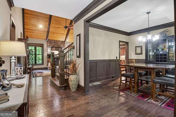 Welcome to your own private Georgia retreat. Nestled behind 600 feet of fenced frontage on Colham Ferry Road in sought-after Oconee County, this breathtaking 25-acre estate offers the perfect blend of timeless craftsmanship, natural beauty, and total seclusion. The stately four-sided brick home immediately impresses with its classic curb appeal and thoughtful layout. The main level features a spacious master suite complete with a tile bath, double vanity, soaking tub, glass shower, and walk-in closet. A formal dining room and warm, inviting living room showcase soaring beamed ceilings and a wood-burning stacked stone fireplace - the perfect gathering place on cool Georgia evenings. The kitchen is a true showpiece, featuring custom cabinetry with a sophisticated two-tone design of rich warm-toned raised panel uppers and bold espresso lowers, a stacked stone backsplash, dark granite countertops, and stainless steel appliances including a double oven. A large walk-in pantry provides exceptional storage, keeping everything organized and within easy reach. The dedicated laundry room with custom cabinetry and a sink adds everyday practicality and convenience. Step outside to the stunning screened-in covered back porch, where the sights and sounds of nature surround you in every season. Upstairs, three additional bedrooms, two full baths, and a loft with custom built-ins provide generous space for family, guests, or a home office. The unfinished basement - a sprawling 1,608 square feet complete with its own wood-burning fireplace - is a blank canvas ready for your vision, whether that's a recreation room, in-law suite, or additional living space. The 1,200 square foot shop is a rare and valuable bonus, ideal for the hobbyist, craftsman, or anyone needing serious workspace right on their own property. Beyond the home, the land itself is extraordinary. 25 acres of beautiful wooded privacy create a natural buffer from the world, while the year-round flowing waters of Allison Creek gracing the back of the property make this a truly special place to call home. Whether you're sipping coffee on the porch, working in the shop, or wandering your own private woods down to the creek - this is the lifestyle so many dream of and so few find. Fiber is hard wired in for High Speed Internet. Youre getting your dream property in the woods with the best internet possible. Properties like this don't come along often. Welcome home!