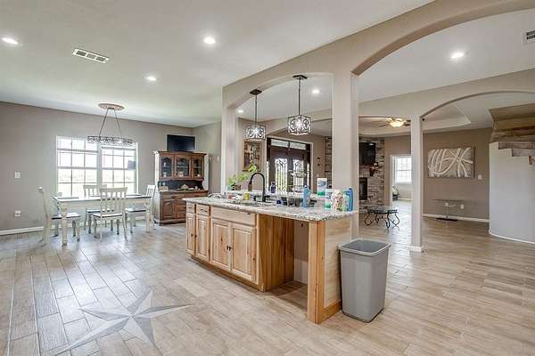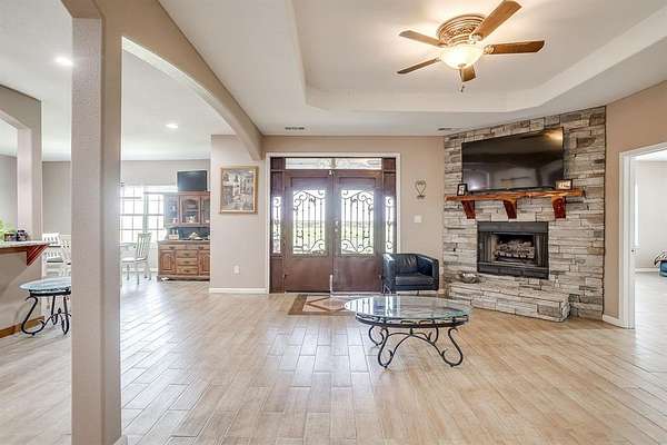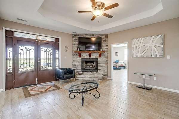 Enjoy country living on 10+ ag-exempt acres in Grandview ISD with this 4-bedroom, 2-bathroom home. Built by the owners, the property features tile floors throughout, open floorplan, custom stone fireplace, oversized rooms including the master suite and huge closets. Upstairs, has already been plumbed and just needs to be finished out. Once complete, it will be a great 2nd master or guest suite, office, game room or bonus room.