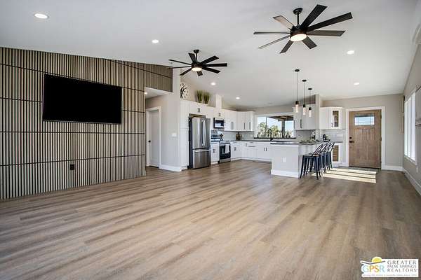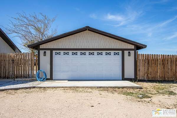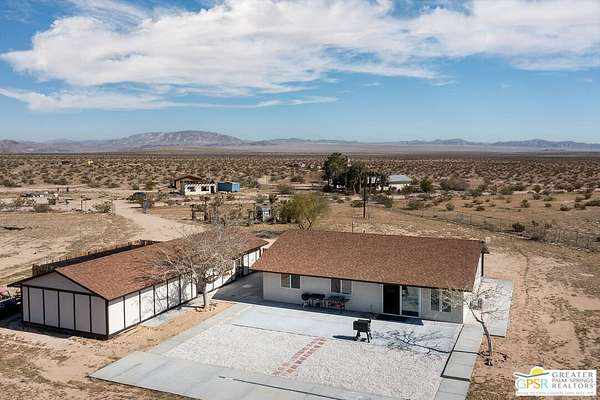 Discover the beauty and tranquility of desert living in Landers. This beautifully remodeled 3-bedroom, 2-bath home welcomes you with a bright, open-concept kitchen and living area perfect for entertaining guests or enjoying peaceful evenings at home. Nearly everything has been upgraded or replaced, making the home feel practically brand new. Improvements include an upgraded septic system, a new electrical panel, and concrete walkways surrounding the home so you'll never have to step in the dirt. High-end vinyl flooring flows throughout the home, complementing a stylish, thoughtfully designed kitchen that is both impressive and functional for everyday living. Step outside and take in the peaceful desert setting with charming views of the surrounding mountains. Situated on over two fully fenced acres, the property offers exceptional privacy along with plenty of room to expand, garden, create outdoor living spaces, or bring your future projects to life. The garage is divided into two separate sections, providing flexible space for parking, storage, a workshop, or hobby area. As night falls, experience one of the high desert's greatest treasures the famous dark skies of Landers. Here, breathtaking star-filled nights create a serene escape that feels worlds away from the city while still being within reach of nearby desert communities such as Joshua Tree and Yucca Valley. Ac and Heat systems are 3 ton mini splits.