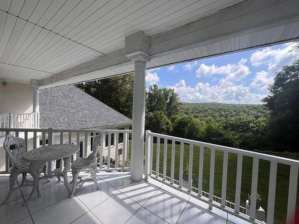 Beautiful home located in the original section of Glade Springs sitting on almost 2 acres with a view overlooking Glade Creek Gorge. Rooms are all generously sized and most have a view of the gorge. The great room boasts 20' ceiling, veranda access and gas fireplace. Kitchen has island, custom cabinets, granite countertops and opens to the family room with veranda access. Large sunroom is just off the family room. Double doors open to the private master bedroom and bath. Master has access to the veranda, large walk-in closet and bath with dual vanities and whirlpool tub. Three bedrooms, two of which have private balconies, three bathrooms and a workout/flex room are found on the second floor. Bathroom in the flex room has a sauna. The den has a wall of built-ins and a private bath.