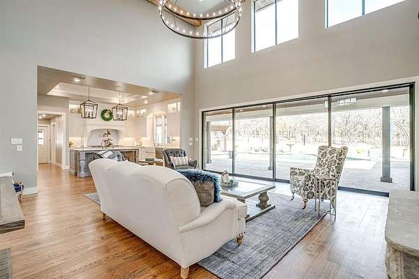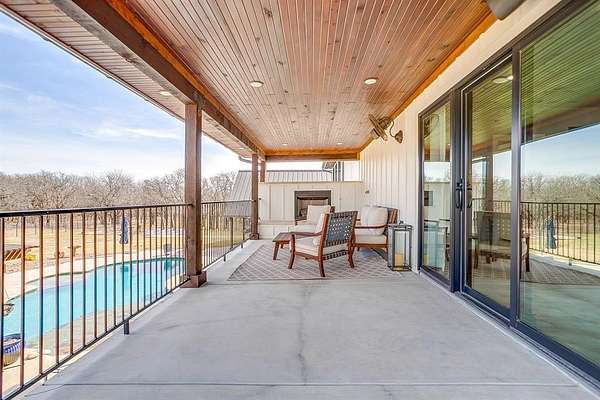 A 750 foot deep water well with 5,000-gallon storage and dual booster pumps supports full-property irrigation and the estate's one-acre stocked pond. Outdoors, enjoy a renovated saltwater pool, crushed granite walkways, extensive hardscape, mature oaks, wood-fired sauna, multiple firepit gathering areas, and curated seating throughout the grounds.