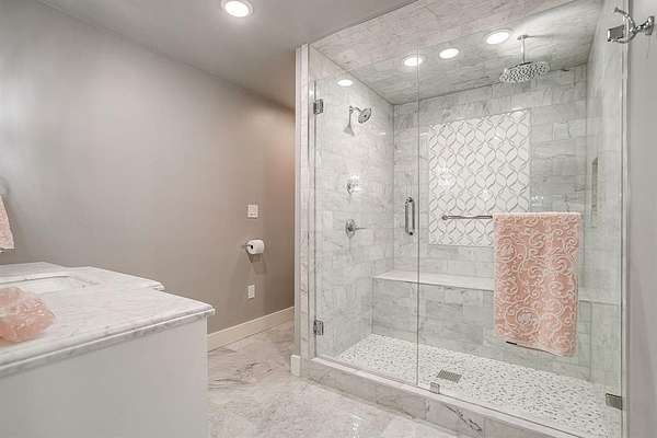 The primary suite offers spa-level comfort with a steam shower and marble finishes, while high-performance construction including spray-foam encapsulation, dual 18 SEER HVAC systems, whole-home filtration, reverse osmosis system, and a whole-home generator ensures effortless living.