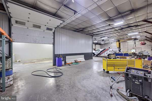 For Lease @ $9.5 Sqft and ready to work. 100x120 Steel building new in 2017 with radiant floor heat powered by boiler that runs on waste oil or heating oil. Offices, waiting area and restrooms have A/C and backup heat. Work area is crane ready for 3 Ton overhead Crane. 2nd floor open floor space above office area great for storage. Air compressor plumbed with air hose reels throughout work area, also plumbed with bulk oil system and hose reels w/ four different oils. Work area equipped with two 18' overhead fans, also 18' garage doors positioned east and west walls for great ventilation. Older attached building is 44x88 Post Frame Building that is unheated, Large wash bay. Lots of parking and potential uses. Property has 1 loading dock. Zoning is Ag in Rapho Township and was previously a Tractor repair shop. Tenant Responsible for Trash, heat, maintenance on building, electric, liability insurance, snow removal. Leasable sqft 15,872sqft +/-.