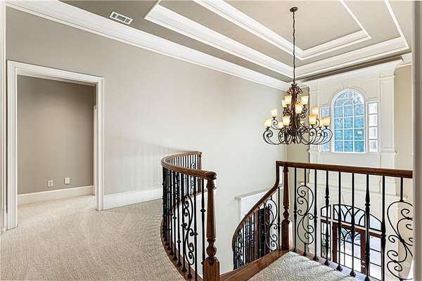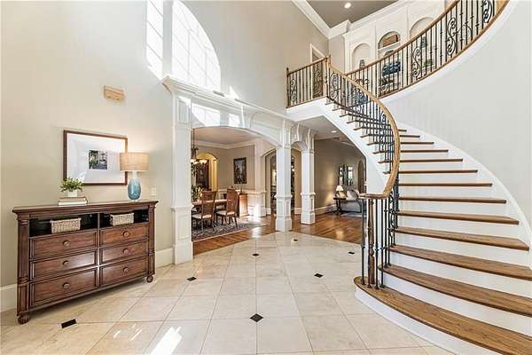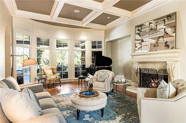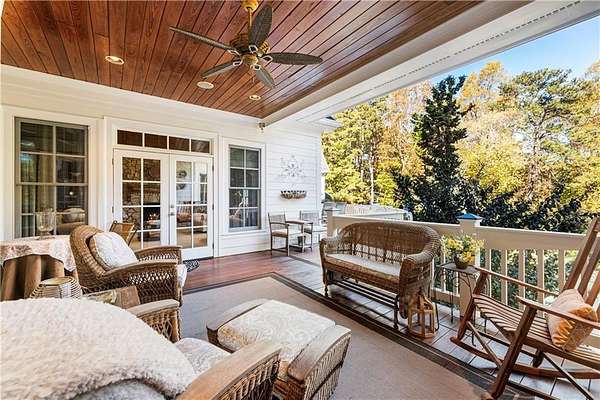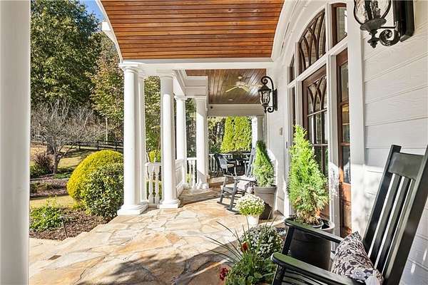 Exceptional custom home on nearly three private acres in the prestigious gated community of White Columns Country Club. Nestled at the end of a quiet drive, this residence offers a rare blend of tranquility and connection--where mornings begin with birdsong and evenings unfold on the front porch, surrounded by peaceful beauty.