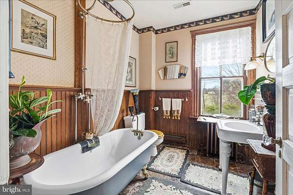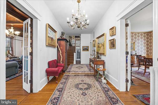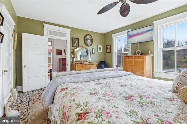 Step into a rare blend of history, character, and countryside charm with this remarkable Queen Anne Victorian estate set on 5.84 scenic acres in Frederick County. Dating back to the 1870s, this center hall-style home offers timeless architectural detail paired with thoughtful updates for today's lifestyle. Inside, the 4-bedroom, 2.5-bath residence showcases original moldings, three fireplaces, and beautifully preserved period features. A welcoming covered front porch leads into an elegant interior where former double parlors now create a spacious living room with custom built-ins and coffered ceilings. This home carries endless stories from the Prohibition era, when it reportedly operated as a speakeasy. A government raid during that time left seven bullet holes in the front door-still visible today-offering a rare and tangible connection to the past. One of the home's most inviting spaces, the former parlor, has been transformed into an ideal sitting room or lounge-perfect as a cozy retreat, entertaining space, or even the ultimate "man cave," blending historic charm with modern comfort. The formal dining room is ideal for entertaining, highlighted by a vintage mantel and classic French doors. The kitchen and adjoining family room strike a perfect balance of old and new, featuring glass-front cabinetry, exposed beams, and a distinctive fireplace with a hearth crafted from reclaimed antique brick. Upstairs, four bedrooms are accessed by a secondary staircase, along with a charming full bath complete with a clawfoot tub and original fixtures. The fully floored attic offers excellent storage or future expansion potential. Beyond the home, the property is equally impressive. Equestrian and hobby farm enthusiasts will appreciate the three-stall stable, multiple paddocks, fenced pasture, chicken coop, kennel, and gazebo. A detached three-car garage with upper-level space provides endless possibilities for a studio, office, or guest retreat. The peaceful setting includes a meandering creek, natural spring, and sweeping views of South Mountain. Ideally located near Brunswick, with easy access to Harpers Ferry, the C&O Canal, Appalachian Trail, and MARC train to Washington, D.C., this property offers both tranquility and convenience. Rich in character and full of opportunity, this one-of-a-kind estate is ready for its next chapter.