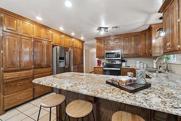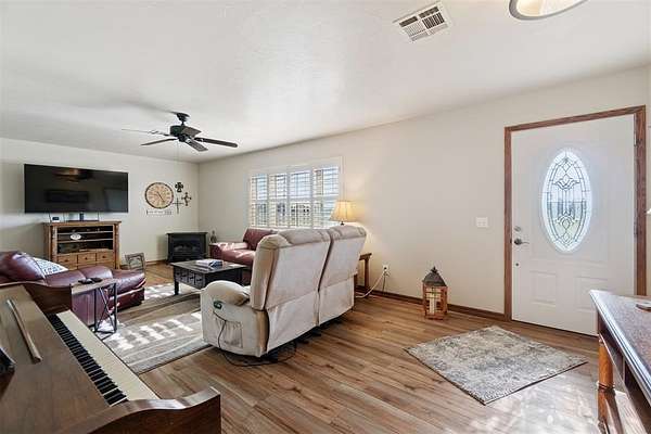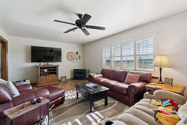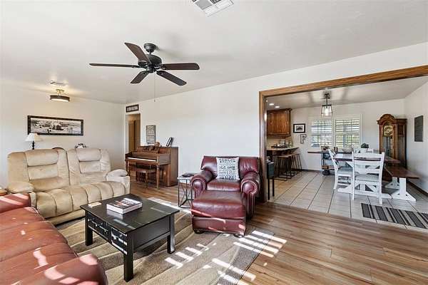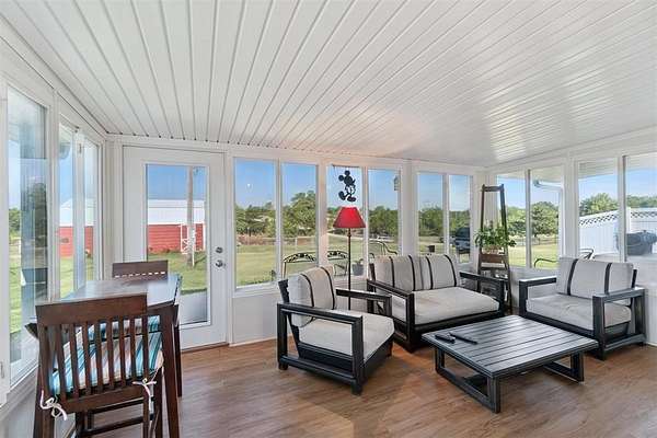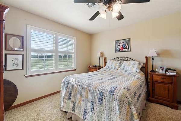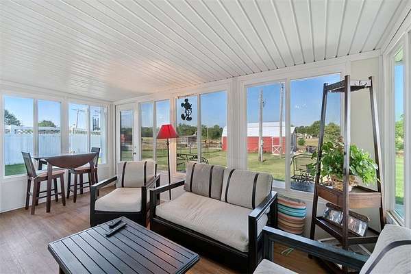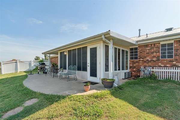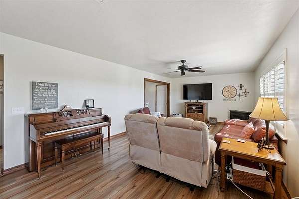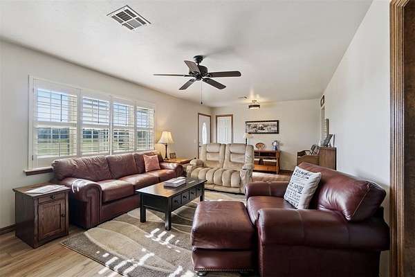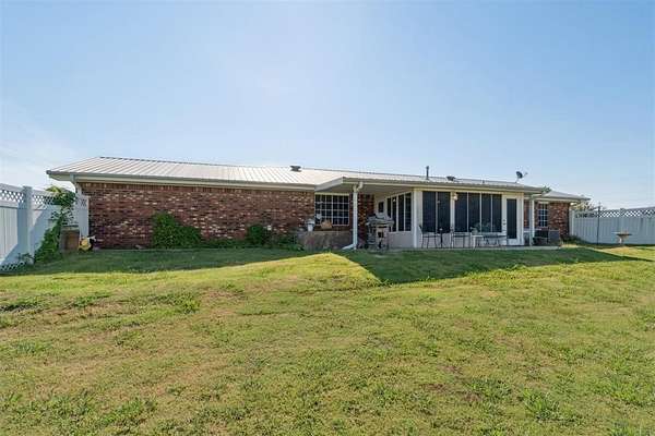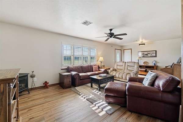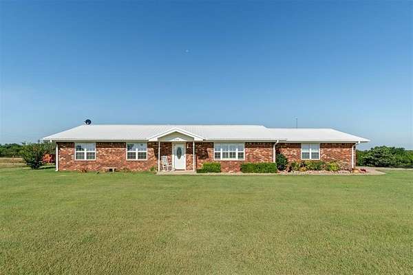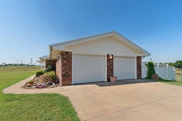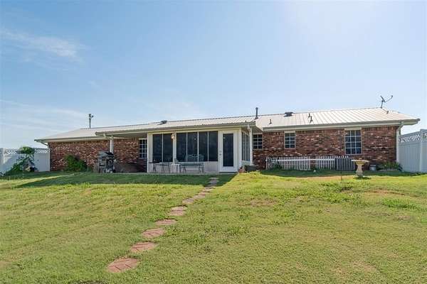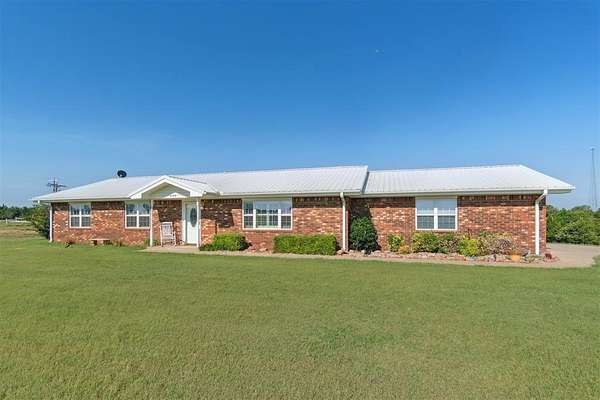 This beautifully maintained 3-bedroom, 2-bath home sits on just over 9 acres at the corner of Carpenter Place and Highway 177, offering both convenience and privacy. The spacious interior includes a custom kitchen with granite countertops and a French door refrigerator that remains with the home. The main living area features a cozy gas fireplace and updated laminate flooring installed in 2022. The primary suite boasts a large walk-in shower and a double vanity, while fresh paint and abundant storage enhance the home's appeal throughout. A heated and cooled sunroom provides additional living space perfect for year-round enjoyment. Outside, the property is well-equipped with a fenced backyard, two ponds, and cross-fencing suitable for livestock. Additional amenities include a nearby storm shelter, a concrete-floored shed with electricity and a loft, and a drive-through shed for added utility. This property blends rural charm with modern comfort--truly a must-see.