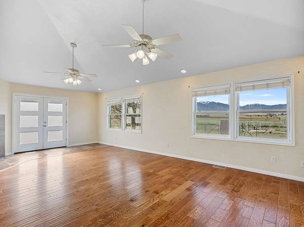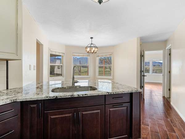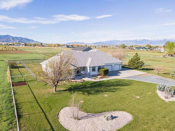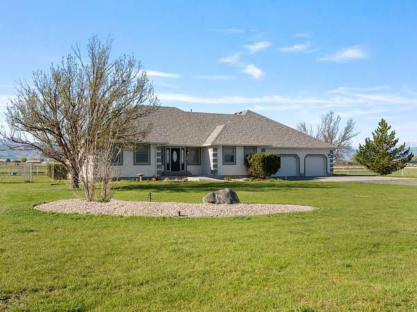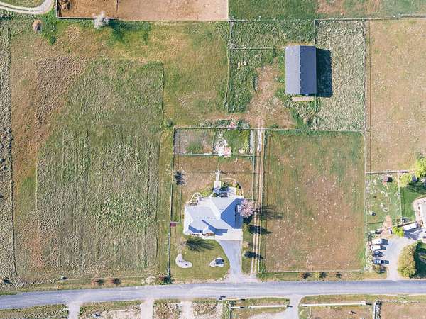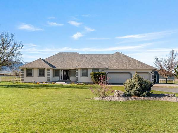 This property blends rural lifestyle with modern convenience-bring your animals, hobbies, and vision to make it your own. The impressive 6,000+ sq ft home offers expansive living and entertaining areas, perfect for gatherings. The spacious primary suite is a true retreat, featuring a cozy fireplace and private walkout to the back patio-perfect for enjoying peaceful country views. Downstairs, the fully finished basement includes a separate entrance basement apartment complete with kitchen, laundry, bath, bedroom and storage. An additional kitchen area in the basement is already plumbed and ready for completion-ideal for multi-generational living. The land is fully cross-fenced with durable drill pipe fencing, ideal for rotational grazing and livestock management. A 50' x 80' concrete walled shop with mezzanine provides ample space for equipment, projects, or storage. Property has an 8 inch private well and 2 acre feet of water is included with additional water available to purchase via water right 15-3800 and 15-3848. Square footage figures are provided as a courtesy estimate only and were obtained from private measurement. Buyer is advised to obtain an independent measurement.