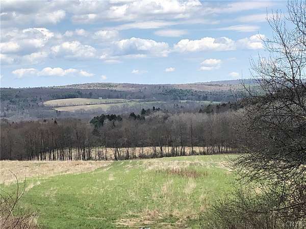 50 acres attractive versatile country parcel is sure to interest land buyers of all types. If you want to grow crops or raise horses or cattle, there is ample field with pasture and water. If you want to enjoy nature and recreation, the varied terrain attracts and holds a wide variety of plant and wildlife. There is room to hike through and around gently sloping land with a mixture of both northern forest hardwoods and softwoods, bordered by apple trees and raspberry bushes. The photographer will be as happy as the hunter. Both will find opportunity for many fine shots. A year-round spring flows through a portion of land and there is a natural basin where you could build a small or very large pond. Well-drained areas with distant valley views or views of the forested hillsides provide fine sites to build your new primary home or get-away second home. Perhaps you want a hunting cabin bordering the woods or a private RV site with views. Easy access to Interstate 81 takes you north to Syracuse, or the St. Lawrence River and Canada. Head south to nearby Binghamton, or continue to Scranton and Philadelphia.
