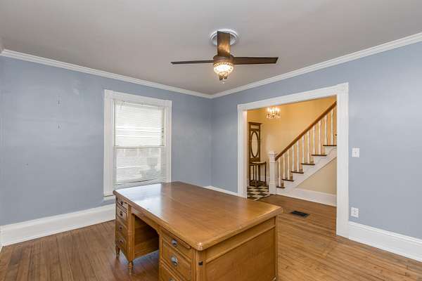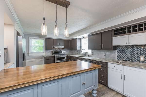 This charming Old Kentucky home, dating back to the 1800s and located in the historic town of Perryville, perfectly embodies the character of that earlier period. Thoughtful and well-executed updates throughout have transformed this 2 story farmhouse into a truly treasured home. Situated on a stunning 2.4-acre lot, boasting 237 feet of frontage along the Chaplin River, this property is a rare find that must be experienced. Step inside the impressive two-story foyer and feel the timeless charm in every room. An exquisite antique pocket door between the living room and home office serves as a stunning focal point. The spacious dining room features a second front entrance, possibly the home's original entrance, and contributes to beautiful light that fills the downstairs. The large living area includes a beautiful built in cabinet and a powder room for your guests. The kitchen has been remodeled to make the most of the space, and includes two pantries, a generous island, elegant leathered dolomite countertops, and all new stainless steel appliances. And the beautiful view from the sink makes washing dishes an enjoyable task! Adjacent to the kitchen is a den with a gas fireplace, perfect for those cozy winter nights. The primary bedroom is on the main floor and offers a recently renovated full bathroom with soaking tub, walk-in shower, and an integrated laundry. Out the bedroom door is a covered porch that will become your favorite spot, where you can enjoy breathtaking scenic views while listening to the soothing sound of the small pond with fountain. Additionally, a fully fenced section of the extensive 2.4-acre lot ensures privacy, with the quality metal fencing preserving the picturesque riverfront vistas beyond. The second story provides a recently added full bath, living area, and 2 spacious bedrooms that is perfect to allow kids to have their own space! Add the large 24 x 26 two car detached garage, and you have the total package! Schedule your private showing today!