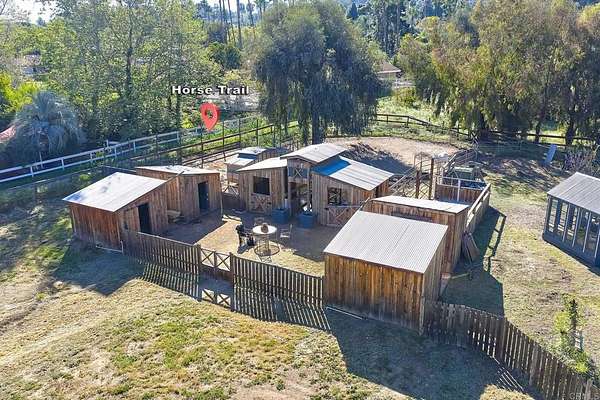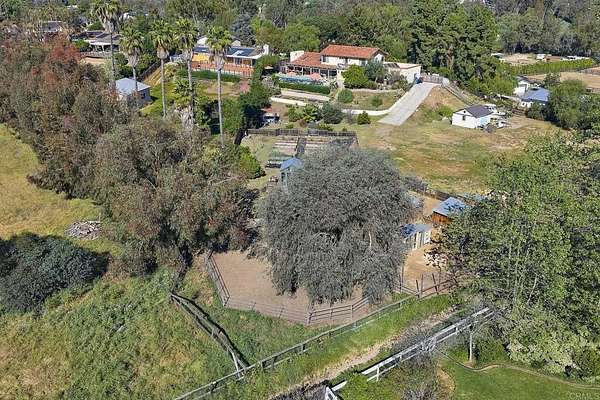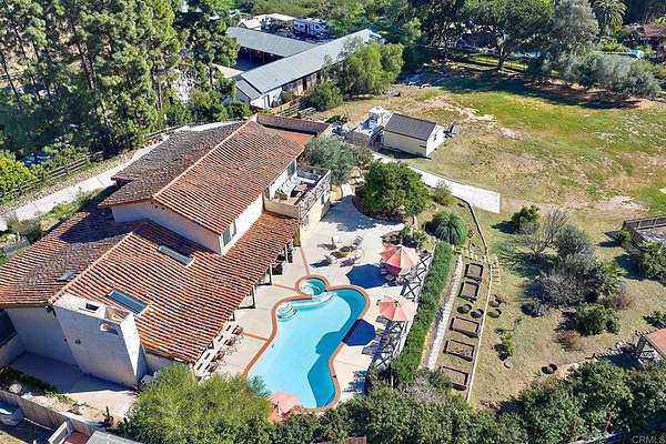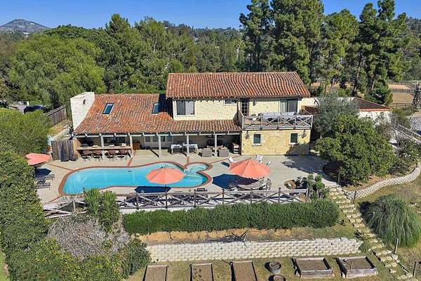Location is everything! Enjoy direct access from this charming Olivenhain equestrian property onto an extensive trail network through Olivenhain, Rancho Santa Fe, and the Olivenhain Town Meeting Hall. An ideal lifestyle for nature lovers and equestrians. This Spanish Hacienda-style home, located at the end of a cul-de-sac on 1.68 flat, usable acres, is set in a highly sought-after area of Olivenhain, just minutes from shopping, dining, Encinitas beaches, and coastal conveniences. Perfectly positioned to enjoy both sunrise and sunset views and complemented by gentle ocean breezes. The property is zoned RR2, offering the potential to be transformed into a multi-generational compound. Ideal for horse ownership with level, well-drained land, full fencing, turnout areas, and existing infrastructure including a barn, tack/feed rooms and hay storage, and space for an arena, tennis courts, and/or guest house. The property also supports a farm-to-table lifestyle with a garden, raised beds, fruit trees, and chicken coop. Features include a spacious living room with fireplace, dining area, library with built-ins, and a remodeled gourmet kitchen with island, a bar-style seating area, Sub-Zero built-in refrigeration, 36” La Cornue range and marble/soapstone finishes. The open main-level floor plan has a primary suite, a bedroom with loft, and full bath. Upstairs offers 3 more bedrooms, including another primary suite and Jack & Jill bedrooms. Resort-style outdoor living with pool, spa, view deck, and multiple patios and balconies overlooking the grounds. Additional highlights include a laundry/mud room with ample storage and a 3/4 bath in garage, with easy access from patio/pool area. This is a rare opportunity to own a functional and beautifully situated horse property in Olivenhain.Call Christie 760-632-9302 or Harriet 619-890-2765 for showings