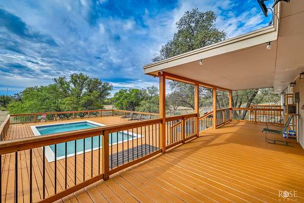 Priced to sell, you will love the peaceful country living on this beautiful acreage property shaded by mature oak trees. Gated entrance for privacy, completely fenced and cross fenced for animals, garden area, plenty of space for chickens, a few goats if you'd like. The inviting outdoor space features a sparkling pool with a wraparound deck-recently refreshed with fresh paint-creating the perfect setting for relaxing or entertaining during warm West Texas days. Too cool for the pool? Then the hot tub may be calling you! Inside the 2,241 sq ft main home, you'll find 3 bedrooms, 2 baths, abundant natural light, and updated finishes including quartz countertops. Recent small improvements inside and out add to the home's comfort and appeal. This property truly stands out with its versatile bonus spaces. A detached office complete with a coffee bar and restroom offers an ideal setup for remote work, a home-based business, or creative studio. In addition, the workshop and detached garage provide excellent storage and space for projects. Situated on approximately 6.6 acres this property offers the perfect balance of privacy, functionality, and convenience-just a short drive to San Angelo. Located in the highly desirable Christoval ISD, this is a rare opportunity to own acreage with amenities that truly support both lifestyle and work-from-home needs. Schedule to view today!