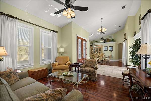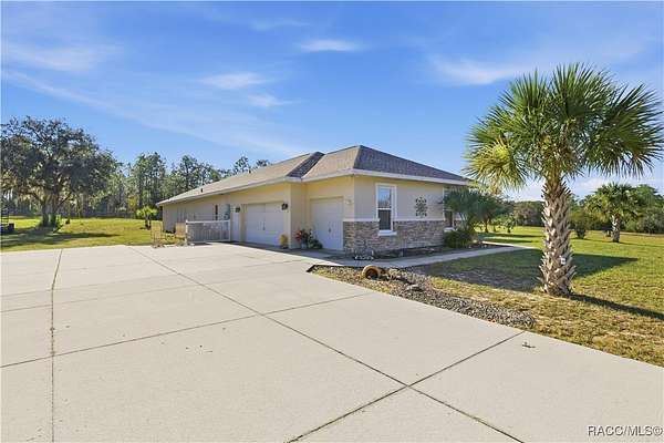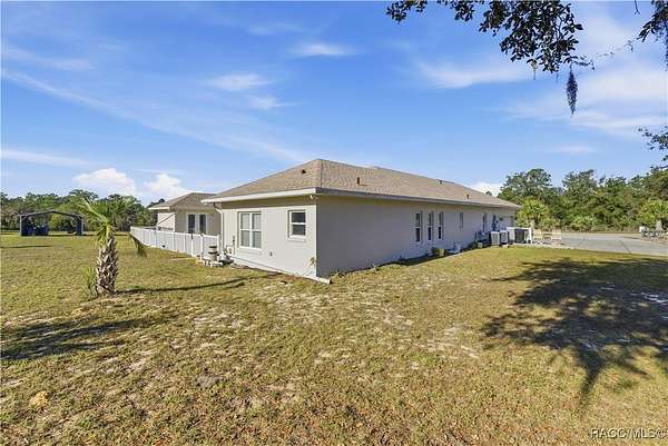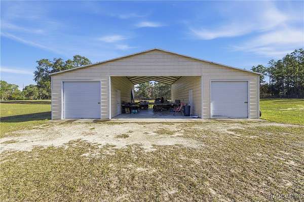 One or more photo(s) has been virtually staged. 7 acre pool estate with workshop, RV hookup, and room for animals-just minutes from boating and the Gulf. This solid concrete block 4-bedroom, 4-bath home on approximately 7 fully fenced acres offers privacy, flexibility, and true rural living with modern upgrades. A 40x44 metal building/workshop provides excellent space for equipment, RV or boat storage, hobbies, or a home-based business. The property includes RV electrical hookup, wide-open usable land, and extensive road frontage on a 400' x 753' lot. The home features a brand-new roof (2025), two newer A/C units, and a split floor plan with multiple living areas. Built with poured solid concrete block walls, the attic is spray-foam insulated and air-conditioned for improved energy efficiency. Additional updates include exterior paint (2021), added garage insulation, and mature palm trees enhancing curb appeal. Enjoy Florida outdoor living with a screened pool and large courtyard, great for relaxing or entertaining. The acreage offers space for pasture, livestock, gardening, or expansion (buyer to verify use). Located approximately 20 miles from the Gulf of Mexico, 8 miles to a Gulf-access boat ramp and Lake Rousseau, and about 25 miles to equestrian facilities. A rare opportunity to own a pool home on acreage with workshop, RV access, and room to live the lifestyle.