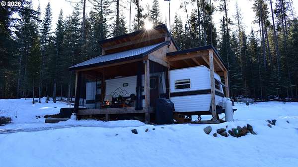 Mile High Five - Build-ready 5+/- acres with power, septic, well, year-round flowing creeks, RV setup, and direct Wallowa National Forest (USFS) access. A rare opportunity to own a truly buildable mountain property with major infrastructure already in place. Power, septic, and well are installed at the homesite, allowing you to move forward with future construction while enjoying the property immediately. The property includes a freshly updated travel trailer (RV) with new finishes and appliances, protected under a constructed cover, providing comfortable use as a temporary residence, hunting basecamp, or recreational retreat while you plan and build your home or cabin.Located on the north face of Mount Howard, this property directly borders the Wallowa National Forest, offering immediate access to over 367,000 acres of public land for hunting, hiking, horseback riding, and year-round recreation right out your back door. A significant advantage is the Wallowa County Planning Department "Perfected" Zone Permit (#14-03)-an increasingly difficult approval to obtain that provides a compliant streamlined path for future development. Prairie Creek and the Estes Ditch run along the eastern and western boundaries, providing year-round natural water. Elk, deer, and native wildlife frequently travel through the property, enhancing the authentic wilderness experience while still offering established infrastructure-a rare combination in the Joseph area.Mile High Five offers something few properties can: year-round waterways, direct National Forest access, existing utilities, and the ability to enjoy the land immediately while building for the future-making it an exceptional legacy property in one of Northeast Oregon's most sought-after mountain locations.