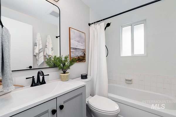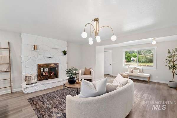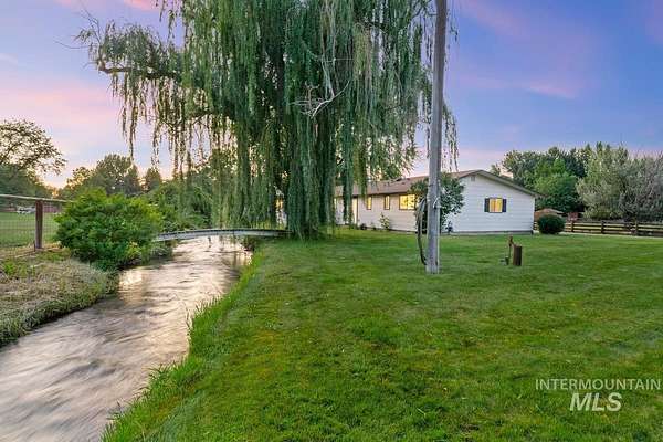 One of a kind Acreage + Horse Property with potential Development opportunity. FULLY REMODELED and no HOA! Minutes from Downtown Boise, The Village, Eagle, and the Boise River Greenbelt for walking, biking, fishing along 25+ miles of scenic paths. This ~2,000 sqft ranch home is on 1.85 acres of usable land: 3 beds, 3 baths, bonus room, sunroom. Open floor plan with brand new paint inside/out, new light fixtures, fresh landscaping. Stunning kitchen: new soft close cabinets, brand new quartz counters and large island. Expanded primary suite: designer accents, soaking tub, double vanity, dual shower-heads. Plus, a Double sided fireplace in great room; guest suite with ensuite bath/huge closet; flexible sunroom for workout or extra space and views of the canal. Horse ready: 40x30 barn/shop with tack/hay storage, animal shelter, lush pasture. Backs to canal with flood irrigation rights (canal shares), water your pasture for about $75/year! Private well/septic and farm/livestock ready! No shared Driveway/easement.