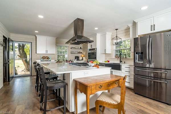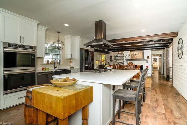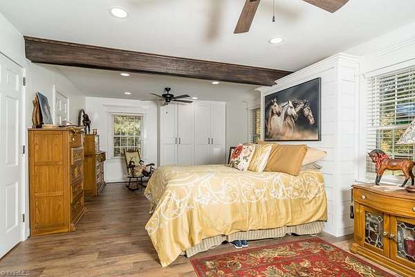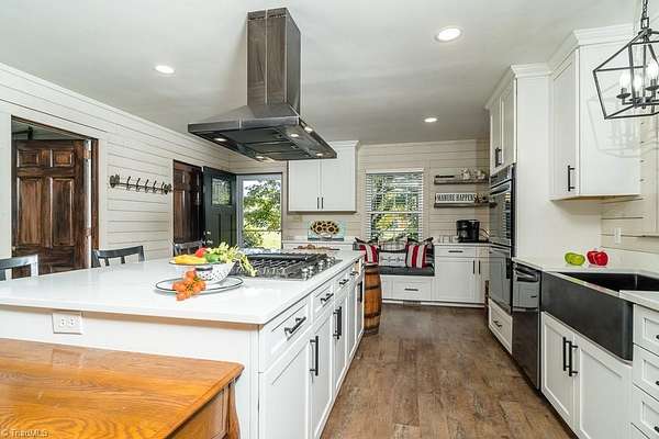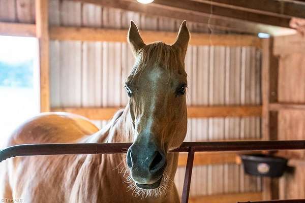 Round the Bend Farm 14.83-ac equestrian retreat in the village of Level Cross. Convenient to amenities. this exceptional property blends classic craftsmanship w/modern comfort.Originally a 1960s custom ranch, the home was renovated in 2020-2021, transforming solid bones into an inviting open floor plan. The kitchen features sleek counters, farmhouse sink, center island, and premium appliances. Updates incl new flooring, lighting, and a beautifully appointed primary bath. 2 former bedrooms were reconfigured into a spacious primary suite, w/2 additional bedrooms and hall bath completing the main level.Ideal for horse enthusiasts or small-scale farming, the property offers a large main barn with overhang for hay & equip, lights, water, 3 interior & 3 covered exterior stalls. A vintage barn awaits restoration. Multiple fenced turnouts & feed shelter add functionality. Long road frontage,no restrictive covenants, circular drive, separate barn entrance, open hay fields.