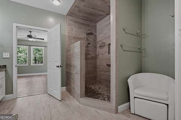 Set across 30.54 beautifully maintained acres, this private estate offers a rare combination of elevated interiors and thoughtfully designed land. Every element of the property reflects care, intention, and long-term investment, creating a setting that feels both refined and effortlessly livable. Inside, the home presents a clean, cohesive design with custom finishes that elevate each space. The kitchen is a standout, featuring crisp cabinetry, stainless appliances, and a striking natural stone backsplash that adds depth and sophistication. The primary suite offers a true retreat, anchored by a spa-inspired bath with a custom tiled shower, pebble stone flooring, and a calming, neutral palette. Beyond the interiors, the property unfolds into a fully usable landscape. A large screened porch extends the living space outdoors, overlooking fenced pasture, a pond, and multiple outbuildings suited for equestrian use, hobby farming, or additional storage.