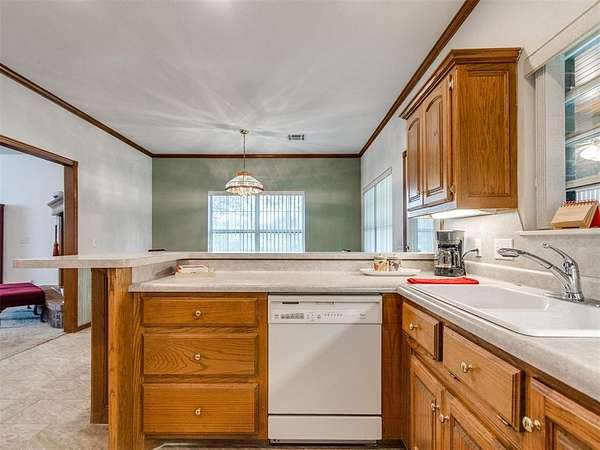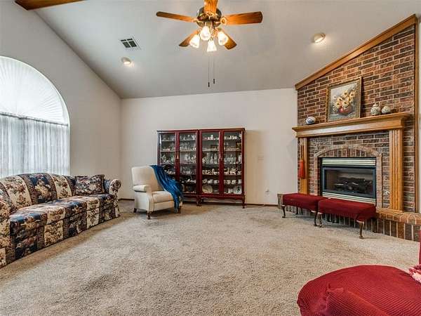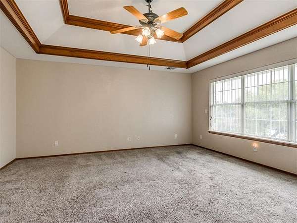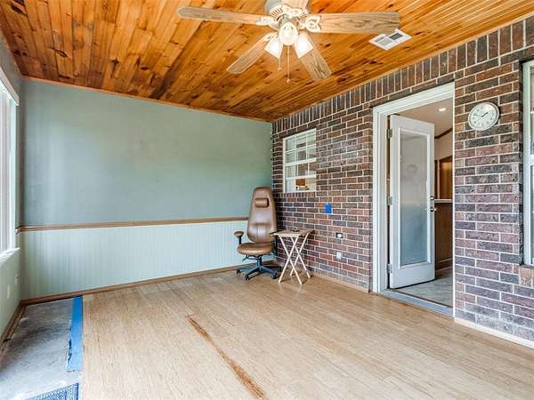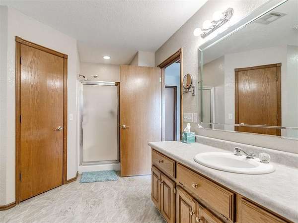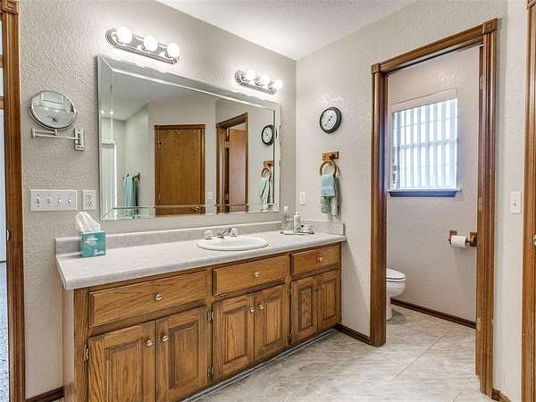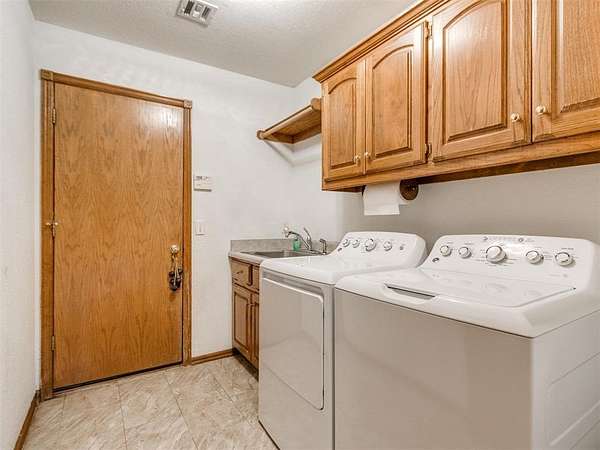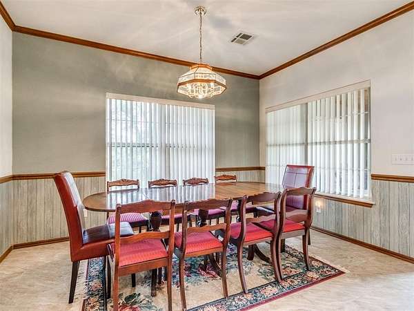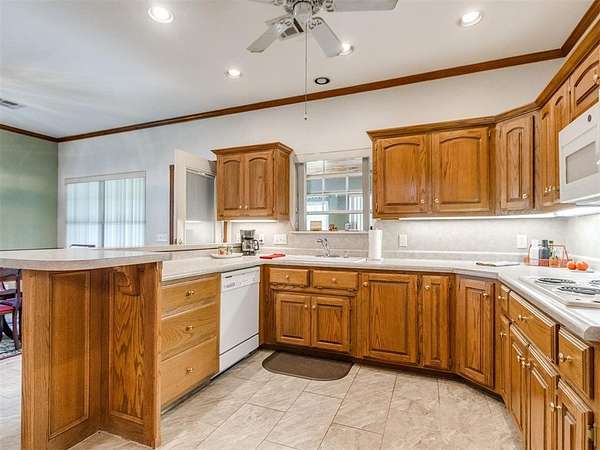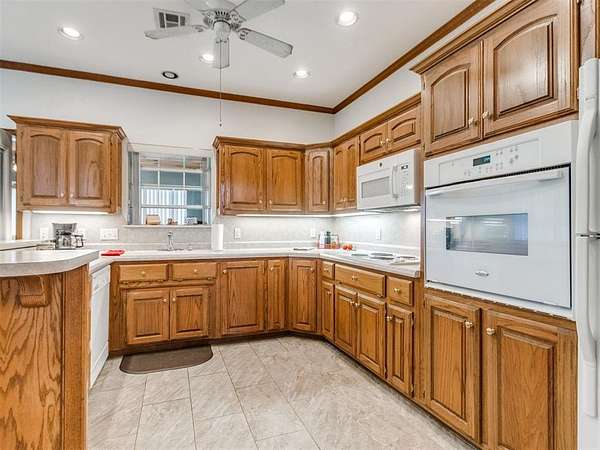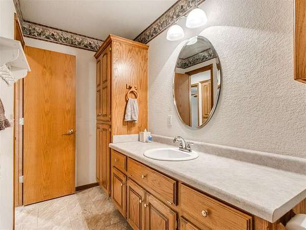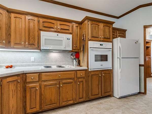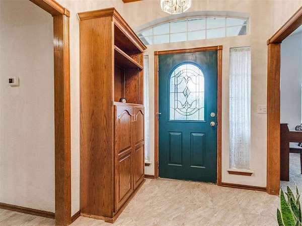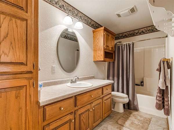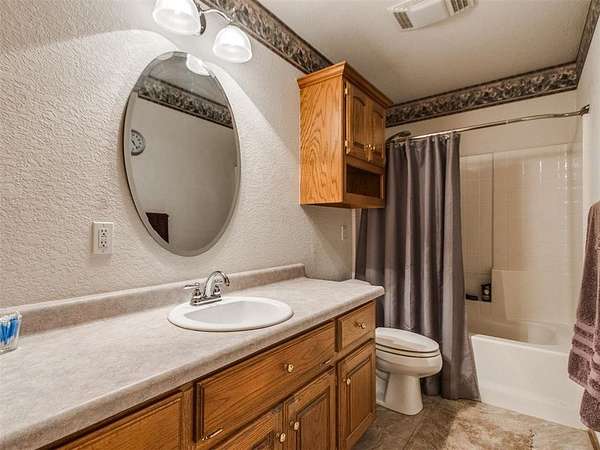 Outdoors, you'll find the lifestyle Oklahoma buyers love: shady mature trees, wide-open yard space, and direct pond views that invite fishing, birdwatching, and sunset gatherings. Two versatile outbuildings expand your options--a functional "she-shed" with electric for crafts or a quiet studio, plus a separate storage building for lawn gear and equipment. An oversized 3-car garage provides extra depth and door height for trucks and toys, and it includes a coveted above-ground storm shelter for peace of mind during severe weather. Everyday practicality shines through with thoughtful touches like upgraded fixtures, window features designed to temper summer sun, and quality trim work.