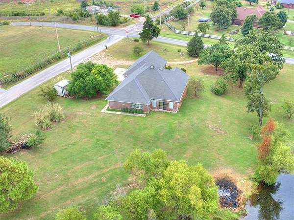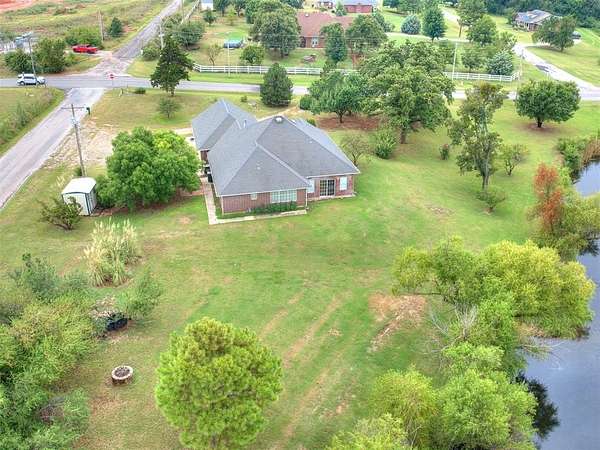 Built in 1999, this custom-feeling home blends durable construction with the comfort of single-level living. The setting is hard to beat--country-calm yet moments to Blanchard schools, shopping, and dining, and an easy jump to major corridors for commuting into the metro. With room to roam, water at your back, and flexible spaces indoors and out, 609 S. County Line Ave delivers the rare mix of privacy, practicality, and postcard views that's so hard to find. Bring your fishing poles, your projects, and your porch swing--this one is ready to be your everyday retreat.