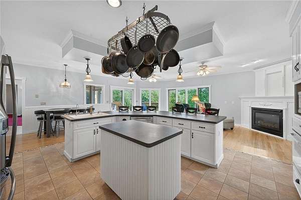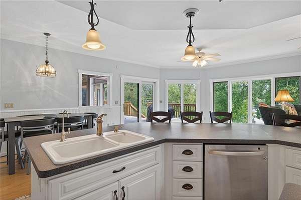 With a six-car attached garage (3 up, 3 down), there's plenty of room for all your vehicles, toys, and hobbies. Outdoors, adventure awaits: bring your canoes, kayaks, and fishing poles to make the most of your waterfront living