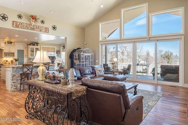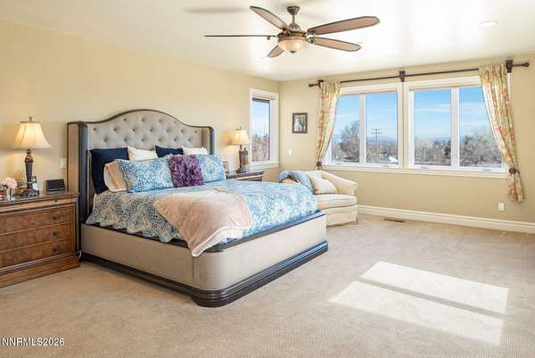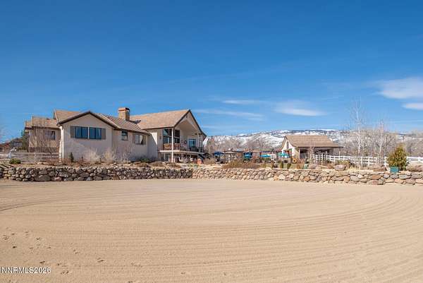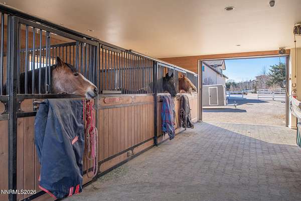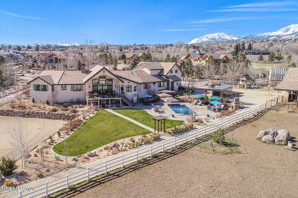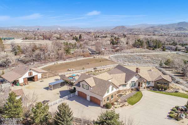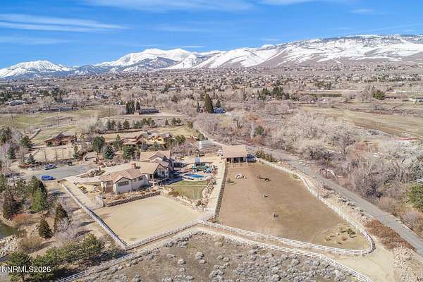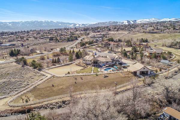 Est $20,823/moGated Equestrian estate, with all the features. 3 stall, stick built insulated barn, with tack room and wash rack. Amazing view of the pasture and city lights. Pool, outdoor bbq/bar, riding arena, private commercial well, and direct access to the 1.7 mile riding equestrian trail around the elite 26 home-sight neighborhood. All of the home is one level, except the expansive game room above the oversized 4 car garage. See why some of the best of Reno call Pacetti Ranch home, conveniently located in South Reno.