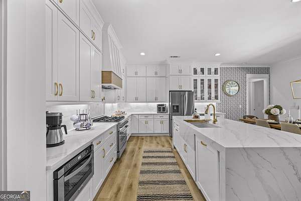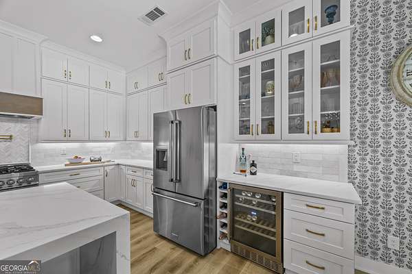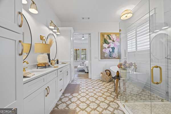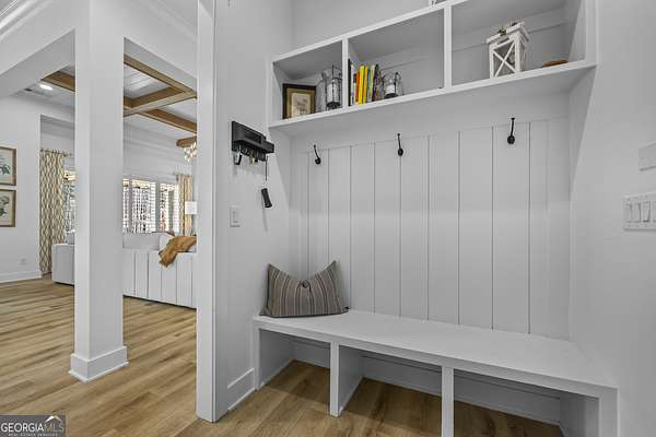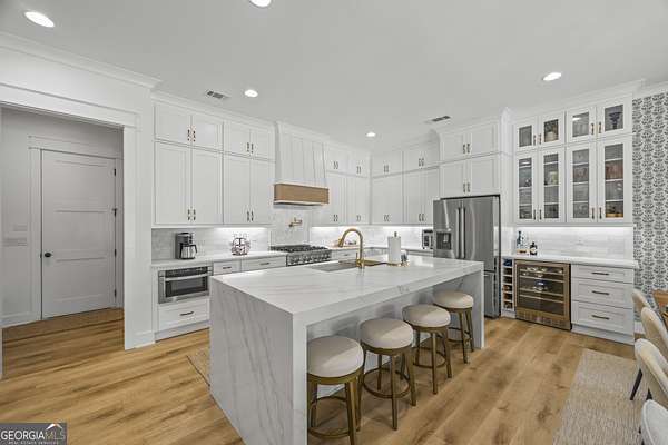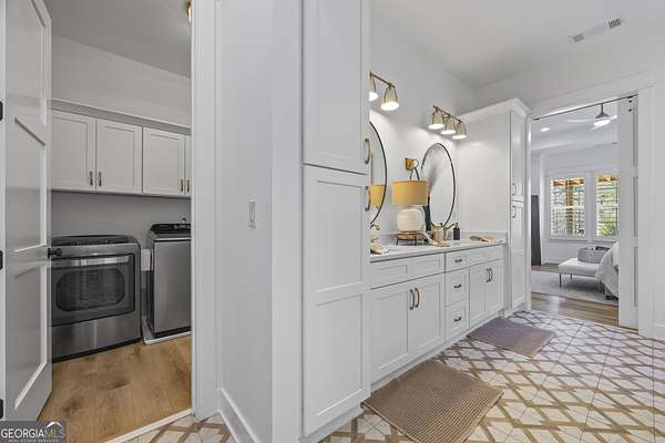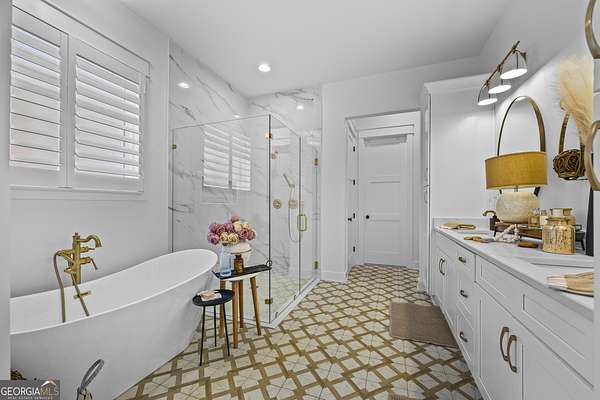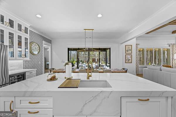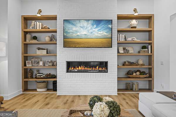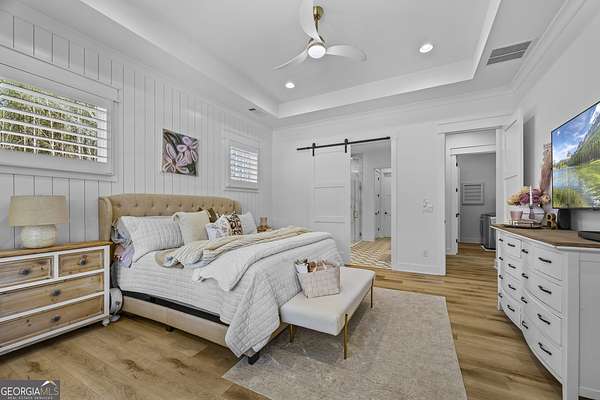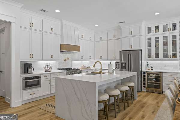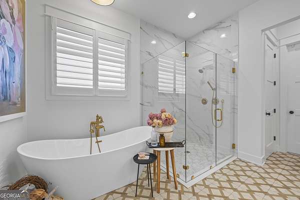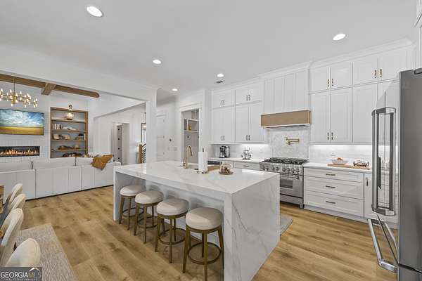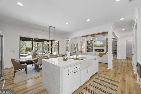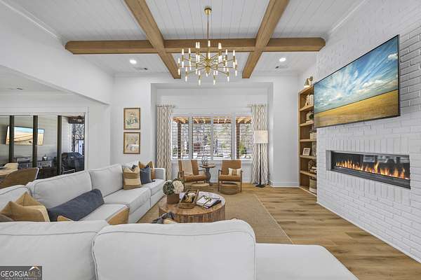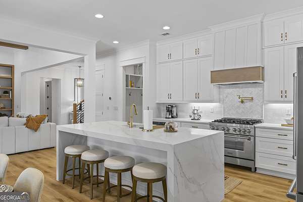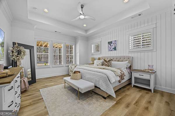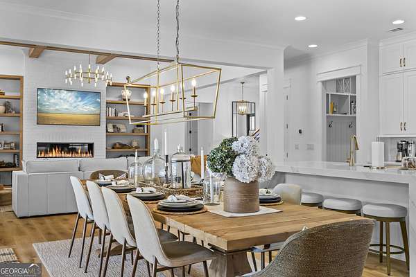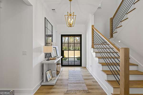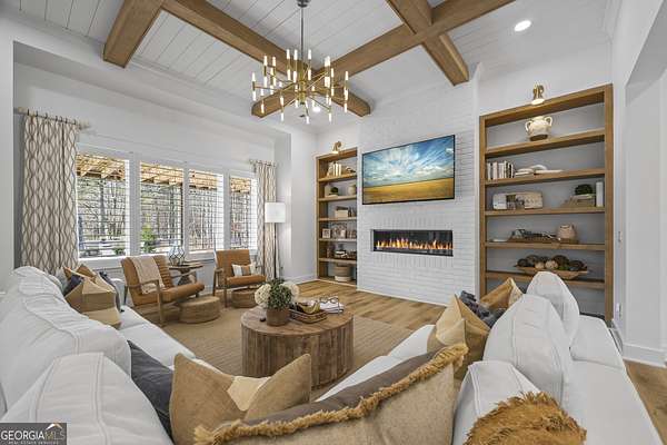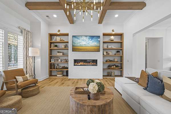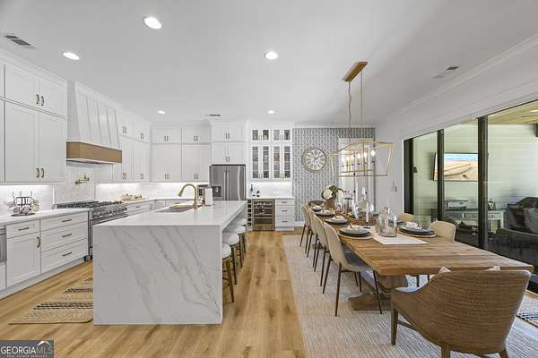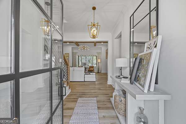 Situated on 2 acres, this better-than-new modern farmhouse with a saltwater pool is a rare opportunity in the North Oconee School District. From the gated entry, the white brick facade with striking black accents welcomes you to a charming front porch featuring a tongue-and-groove ceiling, stone flooring, and custom wood headers and columns. A showstopping full-glass 5' pivot front door sets the tone as you step into the foyer. Luxury plank flooring and plantation shutters extend throughout the entire home. Designed with entertaining and comfort in mind, the open-concept living room features coffered ceilings with tongue-and-groove detailing and a dramatic floor-to-ceiling brick fireplace flanked by built-in bookcases. Adjacent to the living room, the gourmet kitchen is a true showpiece, boasting a large island with waterfall quartz countertops, ZLINE stainless steel appliances, tile backsplash, large basin sink, and a spacious walk-in pantry. The dining area offers ample space for gatherings and features a multi-slide patio door leading to the covered outdoor living area. The owner's suite is a luxurious main-level retreat featuring a tray ceiling, stylish accent wall, expansive custom walk-in closet, and a spa-like en-suite bath with dual vanities, a tiled shower, and a freestanding soaking tub. The laundry room, complete with built-in cabinetry and a utility sink, is conveniently accessible from both the owner's suite and the hallway. A secondary bedroom and full bathroom are also located on the main floor. Upstairs you'll find a bedroom with its own en-suite bathroom, another secondary bedroom, a bonus room or fifth bedroom, and an additional full bathroom. Outdoor living is just as impressive, with an extended covered patio overlooking the stunning in-ground saltwater pool with sundeck and powered shades. A covered pergola fire pit area sits beside the pool house, which is fully finished with power, a mini-split system, and a custom full-glass garage door, perfect for enjoying football nights by the fire. The pool house also includes a convenient storage room. Additional features include a three-car garage, an extended parking pad, a fully fenced property with the front yard partitioned from the backyard, and a sprinkler system that covers the entire yard. The upgraded landscaping and outdoor lighting create a breathtaking setting, especially at night. This one-of-a-kind property combines private, upscale living while remaining within easy reach of Monroe, Athens, and Watkinsville for shopping, dining, and entertainment.