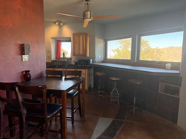 Welcome to Villa Manzanita, a sanctuary of serenity, and a celebration of luxury mountain living. Set at 4,500 feet in the San Jacinto & Santa Rosa Mountains, Villa Manzanita rests gracefully on two acres, offering unrivaled 360-degree views across the Coachella Valley with temperatures averaging 15-20 degrees cooler. Here, every day begins and ends with nature's most breathtaking performance. This home is designed to honor both comfort and beauty. The polished concrete floors lend a contemporary edge that is as practical as it is stylish. Their smooth finish cools the summer days and anchors the home's design with strength and elegance. The living room, elevated by five steps, adds depth and dimension to the open floor plan, creating a sense of intimacy and character within the home's welcoming layout. Fully furnished and turn-key, the residence invites you to step inside and immediately begin living the lifestyle it promises, one of peace, connection, and luxury in harmony with nature. Exploration begins the moment you step outside. Hiking trails cross the property, leading you through shaded groves, sunlit clearings, and vantage points where the world seems to stretch endlessly before you. Whether you walk for exercise, meditation, or simply to savor the air and light, these trails extend the living experience beyond the home's walls into the embrace of the mountain landscape. This residence is not just a property; it is a lifestyle and a National Monument. Morning light cascades over the San Jacinto range, illuminating the Coachella Valley below. By evening, the sunsets turn the sky into a canvas of deep golds, fiery reds, and soft purples. At night, stars sparkle in a way few places still allow, unfiltered and brilliant across the high desert sky. This ever-changing panorama transforms ordinary moments into experiences of wonder and gratitude. To live here is to wake refreshed, breathe deeply of crisp mountain air, and let the silence of nature guide your rhythm. It is to honor the land while enjoying modern comfort, to host with ease, and to live with views that inspire every day. From: Palm Desert - 23 miles, Rancho Mirage - 25 miles, Coachella - 26 miles, Cathedral City - 28 miles, La Quinta - 30 miles, Palm Springs - 32 miles.