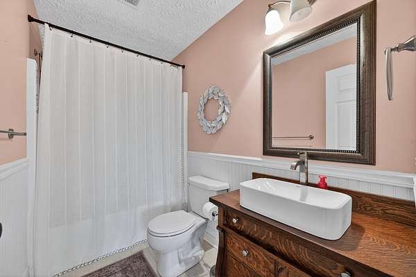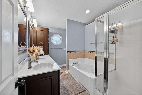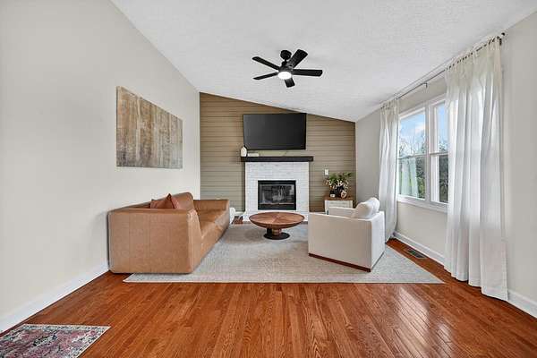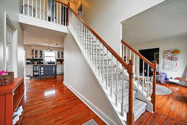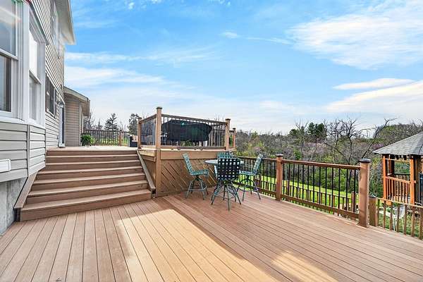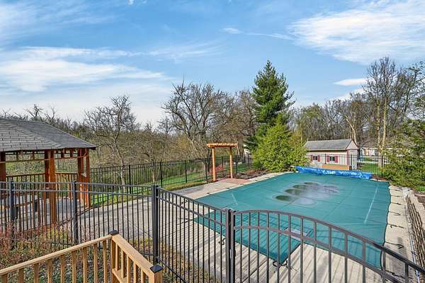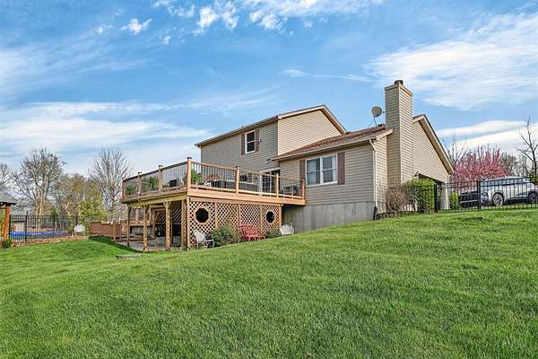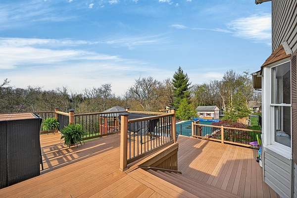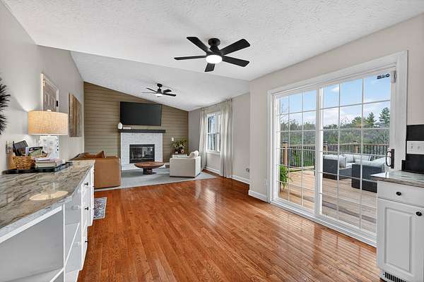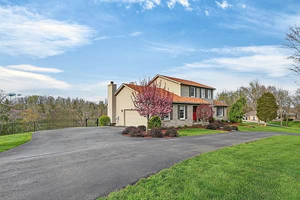 Positioned on 1.53 wooded acres, this property offers the privacy buyers are chasing and rarely find, this rare property offers the privacy and space today's buyers are searching for opportunities like this don't last. Step into an open foyer with hardwood floors and vaulted ceilings that set the tone for the entire home. The Great Room features a cozy wood-burning fireplace, while the eat-in kitchen shines with granite counters, tile backsplash, and ample cabinetry. The first-floor primary suite is a true retreat with cathedral ceilings, double vanity, jacuzzi tub, and walk-in closet. Formal dining and living rooms add flexibility for entertaining or everyday living. Upstairs, two bedrooms each have access to a full bath. The finished lower level includes a spacious family room with built-ins and a wet bar. Outside, enjoy a tiered deck, gazebo, in-ground pool, and a private wooded setting perfect for summer. Homes like this move fast, schedule your showing today.