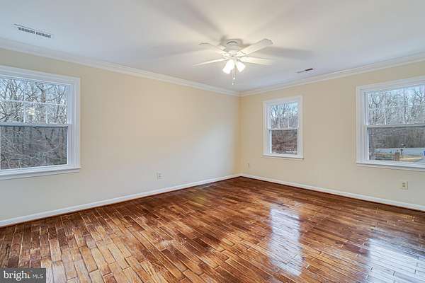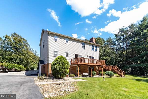 Nature lover's dream on 7+ private acres! This custom-built home offers the perfect blend of serenity, space, and functionality. A long driveway welcomes you to a beautifully wooded property featuring a creekside screened playhouse with water and electric, a wraparound deck, and your own scenic walking bridge. Inside, the home offers incredible flexibility with 7 bedrooms and 3.5 bathrooms, hardwood flooring, and two fireplaces for cozy evenings. There are so many thoughtful touches on all three levels, the owners have recently replaced the roof in 2021, HVAC in 2018 , freshly painted and updated the kitchen with granite countertops and stainless steel appliances. The property also includes a detached garage with finished office space above-ideal for working from home or a studio-plus a large detached shed for storage or hobbies. If you've been searching for acreage, privacy, and a truly unique setting, this beauty is the rare opportunity that checks every box. Great commuter routes into DC, Virginia, and local military bases.