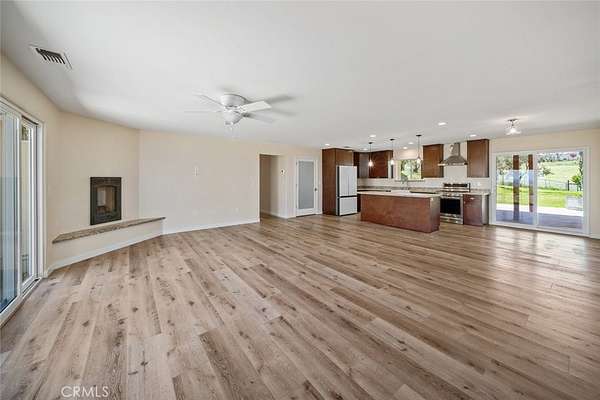 Inside, the four-bedroom, two-bathroom home unfolds with an airy, open-concept design, seamlessly connecting the kitchen, living, and dining spaces. Thoughtfully updated, the kitchen is both elegant and functional, featuring endless counter space, a large island, a walk-in pantry, and modern cabinetry, countertops, and appliances. Natural light pours in from every angle, enhancing the effortless flow and inviting ambiance throughout.