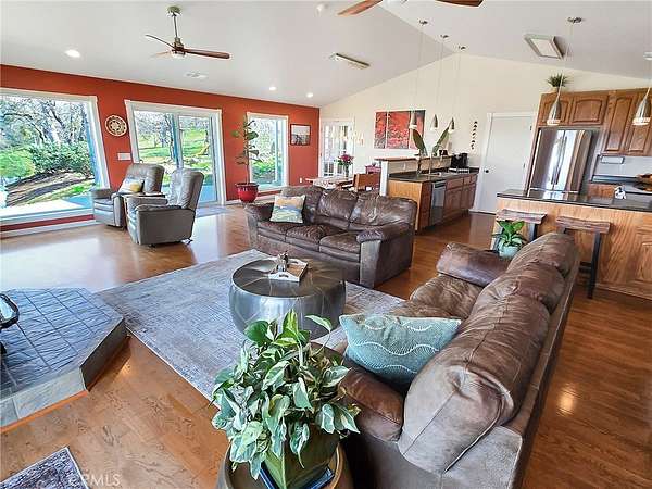 Experience the Ultimate Sierra Foothills Retreat: Luxury, Independence, and Infinite Views. Perched atop a rare, flat mountain plateau, this 30-acre estate offers a lifestyle defined by peaceful seclusion and 360-degree panoramas. From this vantage point, you can watch the sun rise over the Sierra Nevada peaks and set behind the distant Coastal Range—all without leaving the comfort of your living room. Constructed in 2005 with a focus on longevity and craftsmanship, the custom home features a modern open-concept design wrapped in durable Hardi-plank siding. The heart of the home is a light-filled great room anchored by a cozy wood-burning stove and a well-appointed kitchen equipped with a brand-new induction cooktop, custom cabinetry, and a large pantry. The home features: 3 bedrooms (2 downstairs plus primary upstairs); a dedicated office (convertible to a 4th bedroom?); a large upstairs primary bedroom sanctuary featuring a private deck overlooking a seasonal pond; and an expansive concrete patio that surrounds the entire home, providing a private basketball court and a perfect stage for entertaining against a backdrop of Mariposa’s natural beauty. Further, this property offers a second building site. Boasting its own spectacular views separate from the main home, its own engineered septic system, and power at the property line, this area is ready for a guest house, a professional studio, or a shop. While you enjoy the absolute silence of a 30-acre "no-neighbor" buffer, you remain remarkably connected. The historic town of Mariposa is just a 15-minute drive away, and the gates of Yosemite National Park are reachable in 30 minutes. This is more than a home; it is a meticulously maintained, high-tech haven in the heart of California’s Gold Country.
