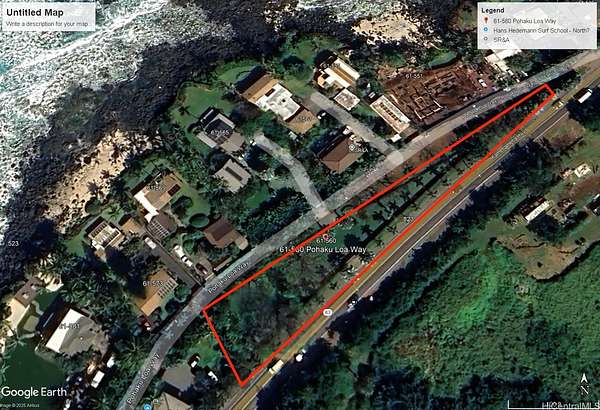 Est $12,536/moIncredible "Double Lot" Beach-Side of Kamehameha Highway and just a few steps to several sandy beaches and several famous Surf Breaks (Laniakea on one side, Chun's Reef on the other and Jockos right out front). Zoned for at least 2 Homes - subject to "approvals". . . And - future CPR Possibilities. Sell one and live in the other home!? Feel free to drive by and picture yourself living this close to world-class Surf Breaks! Fully enclosed property with 6' Rock Walls around the perimeter. Two Gates (one on Kamehameha Highway and the other on Pohaku Loa Way). Ocean view from any second Floor rooms of either of the two possible homes!