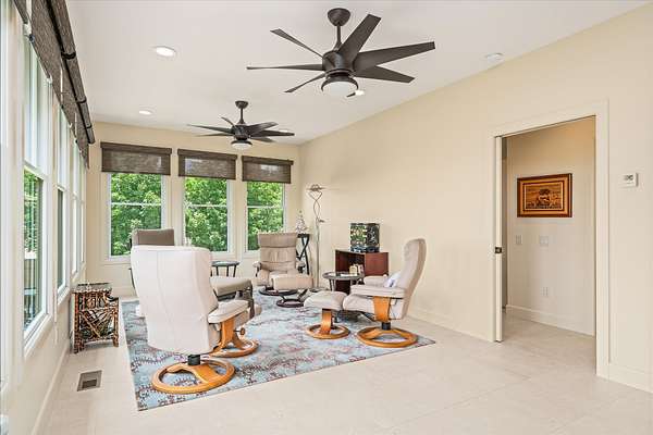 This elegant retreat in The Bluffs was built to celebrate the view--and your life within it. Set on 1.55 private acres, this custom-built retreat offers stunning views, striking architecture, and single-level living with style and substance. The thoughtfully designed layout features 4 bedrooms, 2 full baths, and 2 half baths, with both casual and formal living spaces that flow effortlessly for entertaining or everyday comfort. From the moment you walk in, you're greeted by soaring ceilings and a wall of windows that invite the outdoors in, while the show-stopping floor-to-ceiling granite fireplace anchors the main living space with timeless style. The gourmet kitchen features an oversized granite island, walk-in pantry, and seamless access to the dining area, sunroom, and screened balcony. Enjoy morning coffee from the screened balcony, work from the private office, and retreat to a serene primary suite complete with dual walk-in closets and a spa-style bathroom. There's even a large bonus room with its own half bath upstairs for hobbies, guests, or media space. With a 2.5-car garage, oversized laundry, two dedicated office spaces, and high-end finishes throughout, this home was designed for both function and wow factor. Perfectly positioned among mature trees with a sense of peace and privacy--this is elevated living in one of Fairfield Glade's most sought-after settings. Buyer to verify all information before making an informed offer.